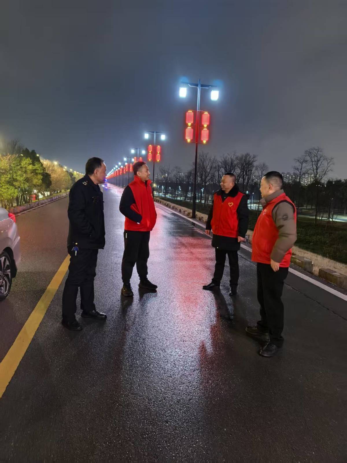 除夕夜,工作人员在江堤巡查。(受访者供图)