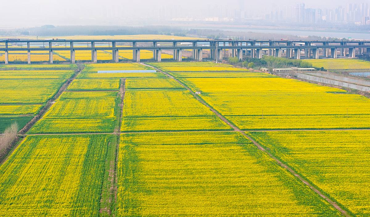 武汉市天兴洲岛,这个春天迎来了她最辉煌的一刻,万亩油菜花全面盛开。