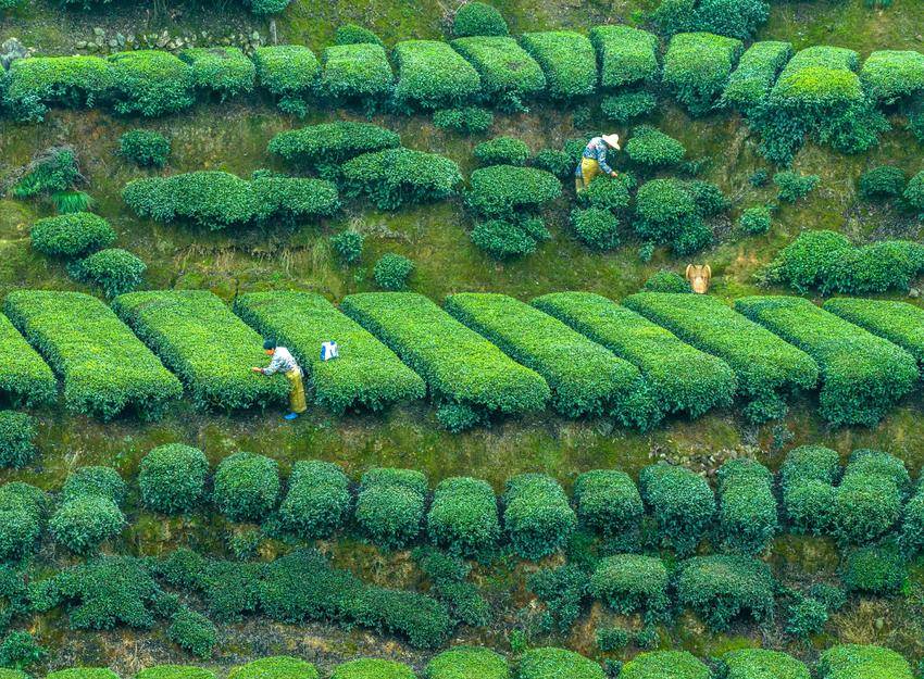 湖北日报客户端讯(通讯员王罡)时下,三峡库区湖北省宜昌市秭归县的11万多亩茶园已进入采摘季。茶农采茶的身影与茶梯、茶垄的线条相融,奏响春日大地最美的乐章。