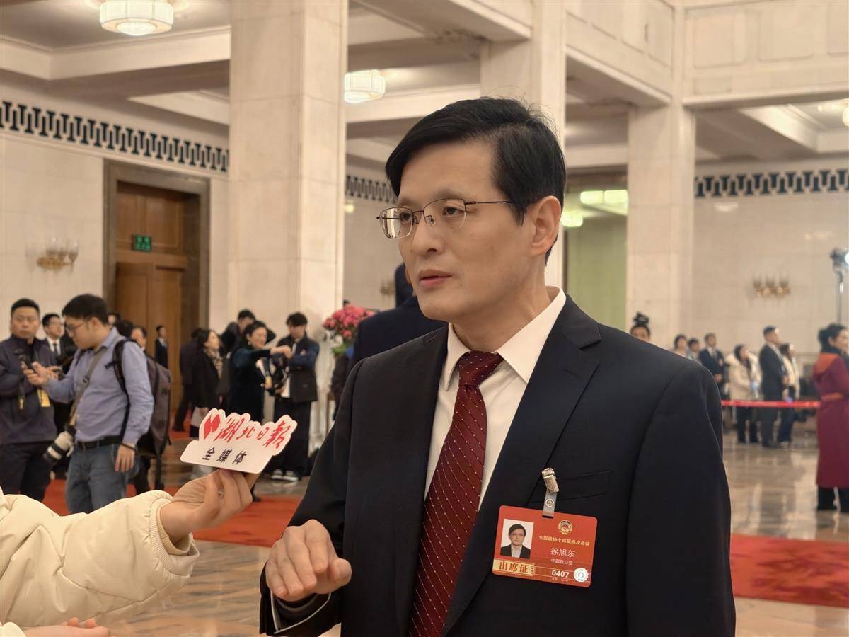 全国政协委员徐旭东接受采访。(湖北日报全媒记者 陈少哲 摄)