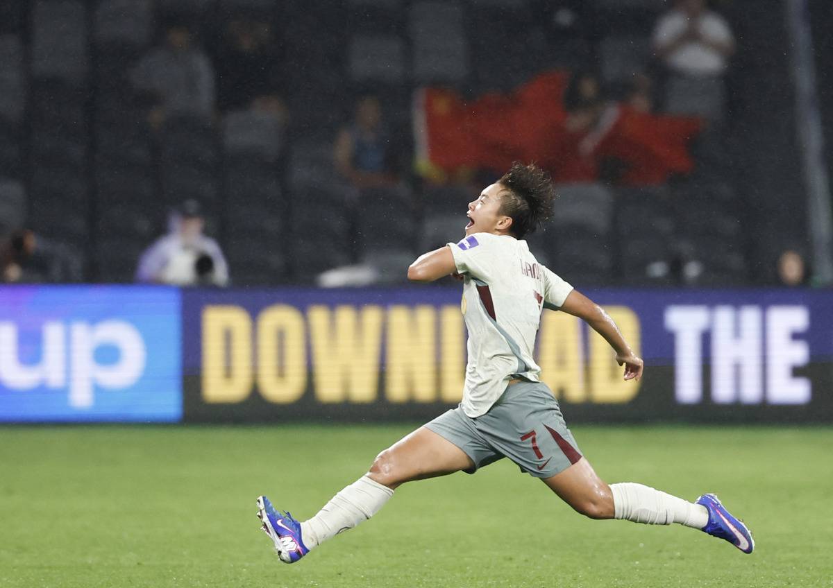 王霜(中)在进球后与队友庆祝(来源 新华社)