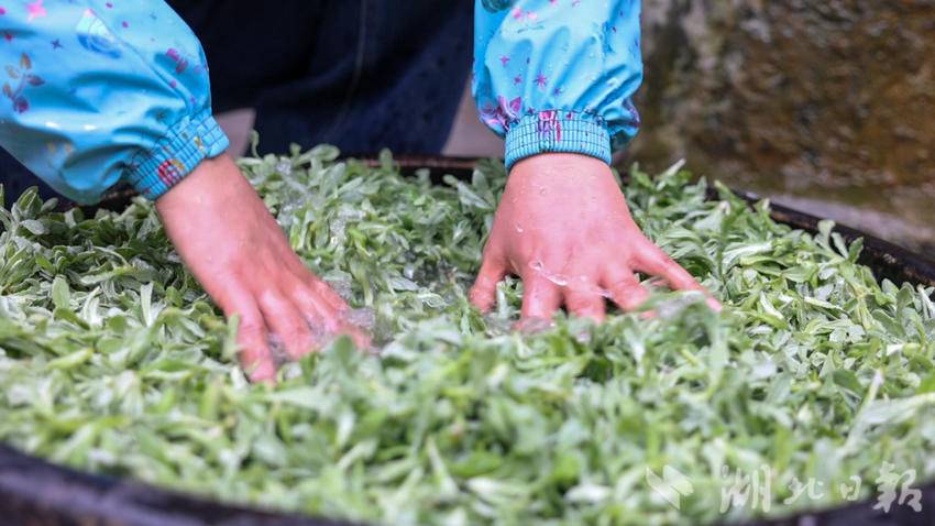 颜红菊一边操作一边说:“要快!十几秒就要捞起来,不能久煮。煮过了,那个清香味就跑了,颜色也不绿了。”