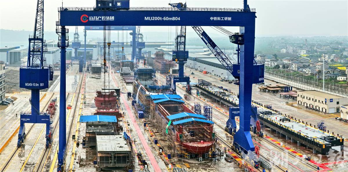 目前,该企业手持船舶订单17艘,另有近20艘待签订单,已形成“在建一批、交付一批、待签一批”的良性滚动发展格局。自2025年6月宜都市绿色智能船舶产业园一期建成投产后,宜昌达门船舶实现“拎包入驻”、快速投产,新厂区配套建设6座200米长船台,并配备国内首创的“集成式船舶反拉滑道下水系统”,实现船舶下水全过程可视化、智能化管控,显著提升了船舶下水的安全性与可控性。