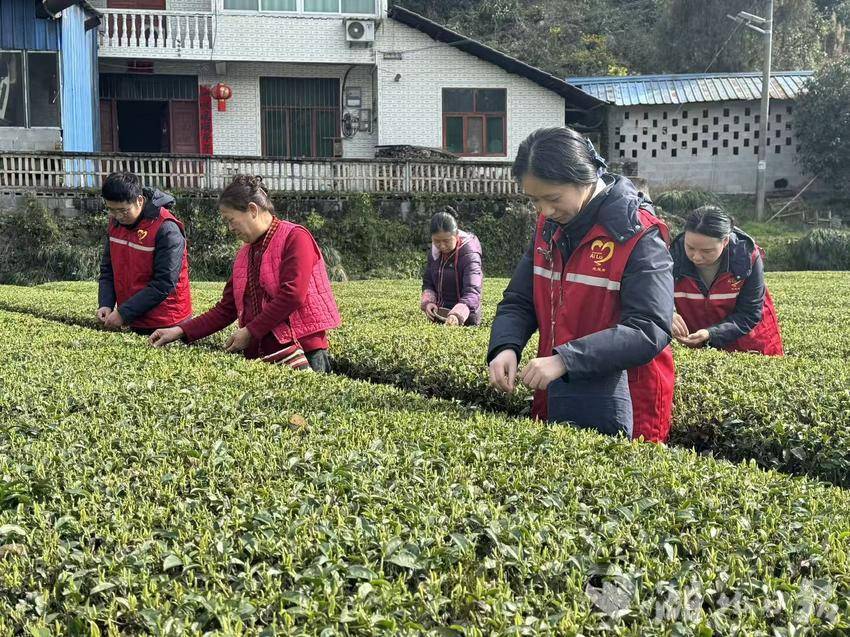 茶园里,志愿红与茶山绿相映成趣,成为春日里一道暖心的风景线。茶农手把手传授“一芽一叶、轻捏轻采”的采茶技巧,志愿者们认真学习、快速上手,手提竹篮俯身茶垄,指尖翻飞间,片片鲜嫩茶芽便落入篮中。大家分工协作、抢抓农时,采摘间隙还与茶农拉家常、话收成,细致询问茶叶种植、管护、销售等情况,将暖心关怀融入田间劳作。春日的茶山,欢声笑语不断,一抹抹志愿红与遍野茶山绿相映成景,成为乡村振兴路上一道温暖的风景线。