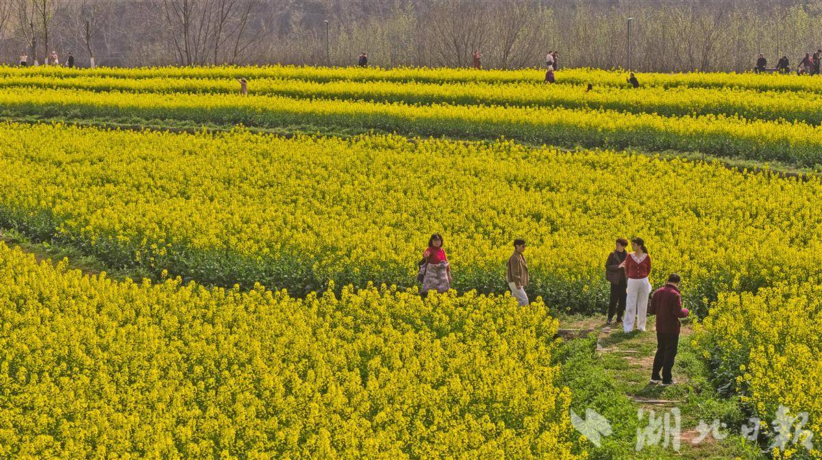 3月10日,宜昌卷桥河湿地公园内的油菜花进入盛花期,金黄花海与湿地风光相映成趣,吸引众多市民与游客络绎不绝前来赏花踏青、拍照打卡,尽享春日美好时光。