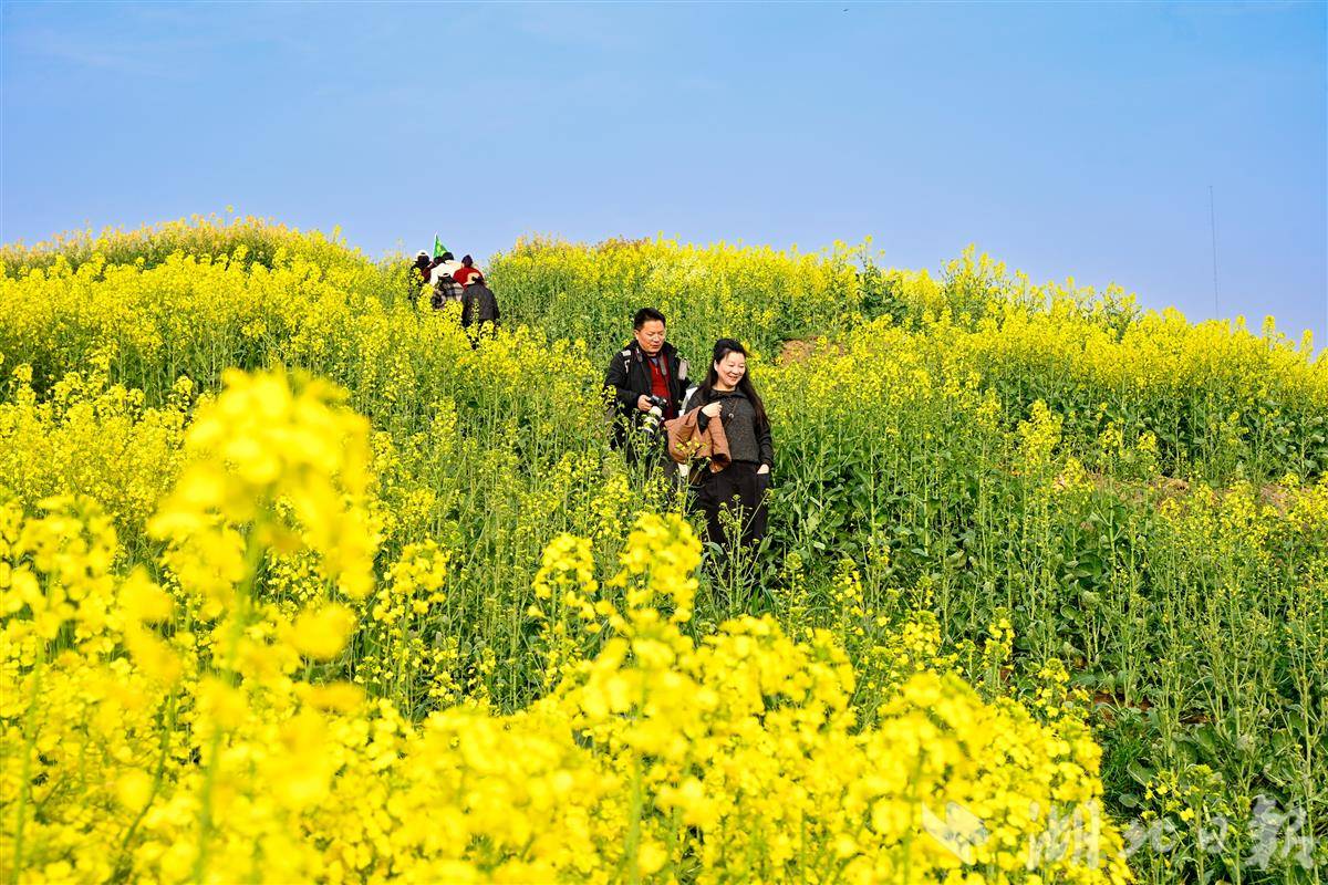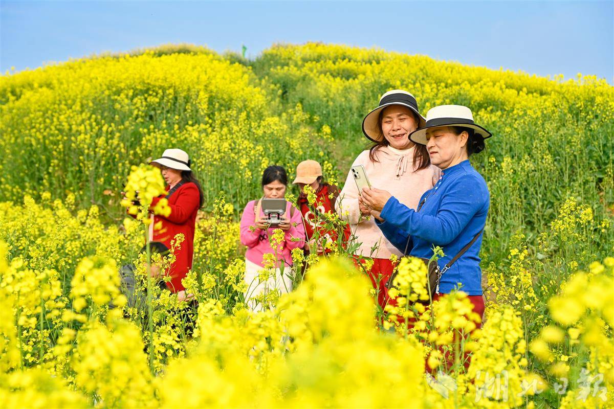 3月9日,黄冈市浠水县巴河镇城山村,千亩油菜花海竞相绽放,各地游客置身花海之中,赏花踏青、拍照打卡,尽享春日美好。近年来,浠水县立足农业资源优势,以油菜种植为基础,深度推进农旅融合发展,将“粮油田”打造成“景观田”,让乡村风光转化为旅游资源,既带动了油菜产业增值,又拓宽了村民增收渠道,以“农旅融合”新模式为乡村振兴注入强劲动力。(视界网 王江 摄)