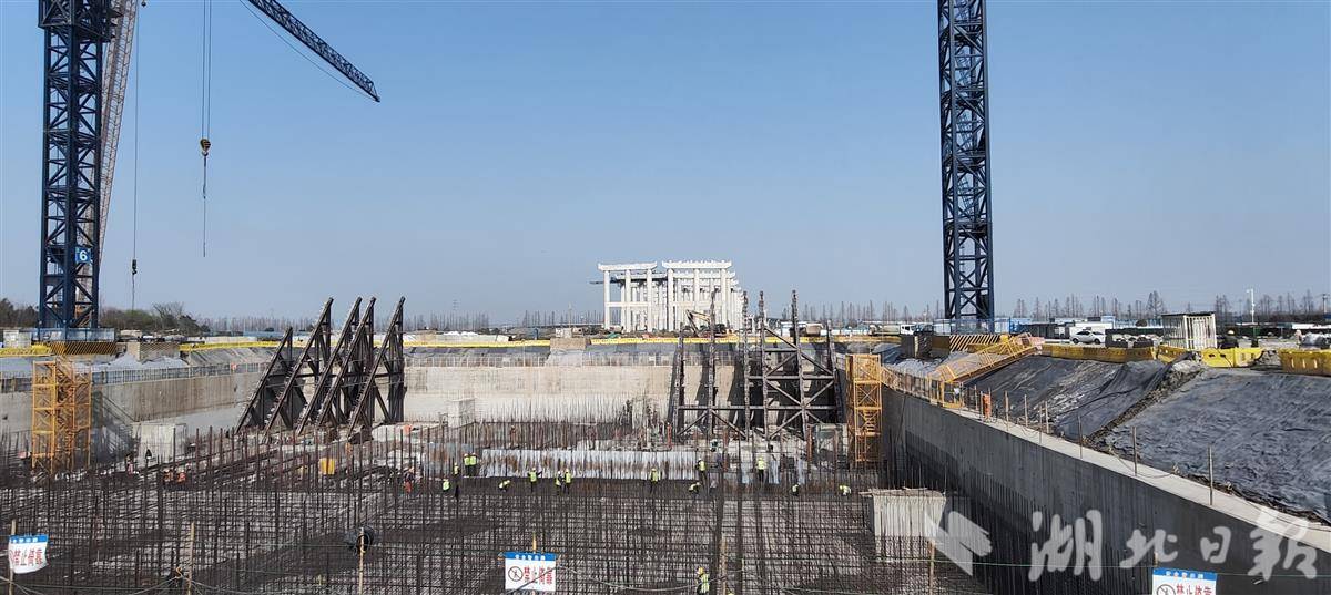 汉南长江大桥北岸锚碇沉井施工现场。湖北日报全媒记者 汪洋 摄