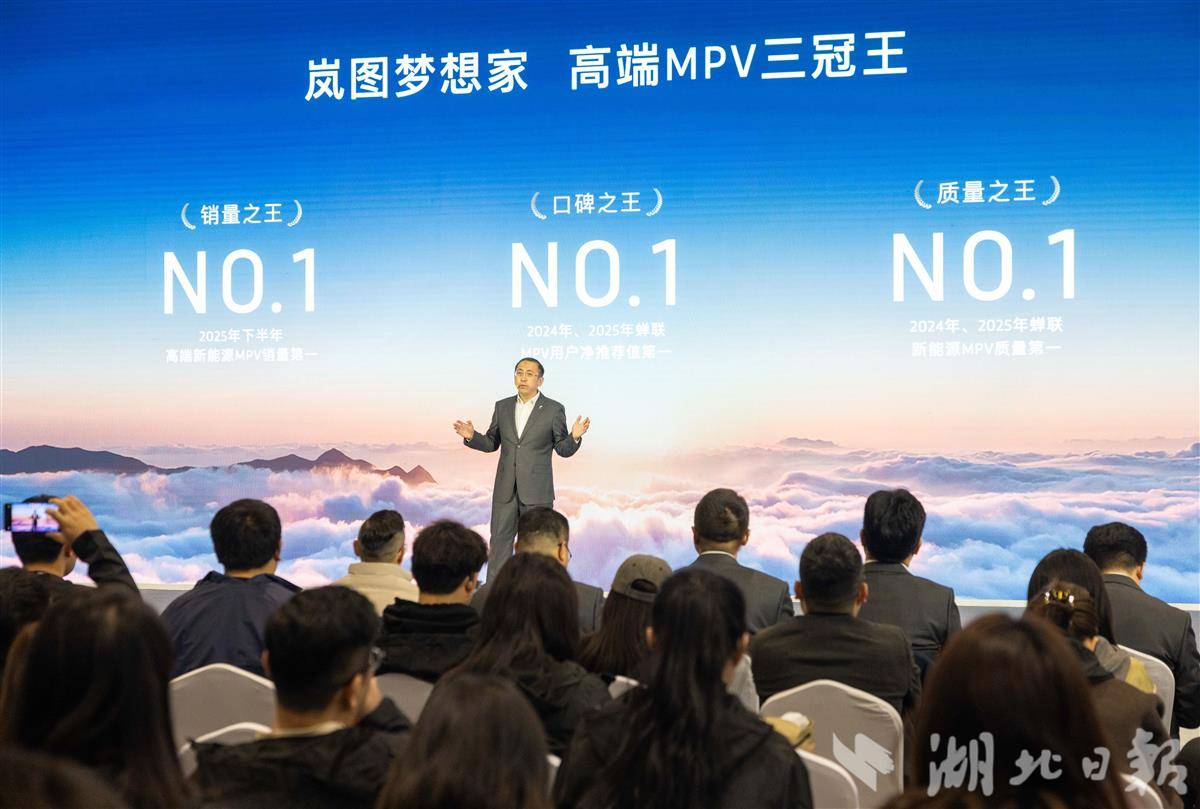 3月10日,岚图梦想家第20万辆整车在武汉黄金工厂正式下线,奥运冠军杨威成为第20万辆岚图梦想家车主。新车售价30.99万元,采用全新“曜黑格栅”设计,搭载同级唯一华为乾崑智驾ADS4和鸿蒙座舱5。(湖北日报全媒记者 薛婷 摄)