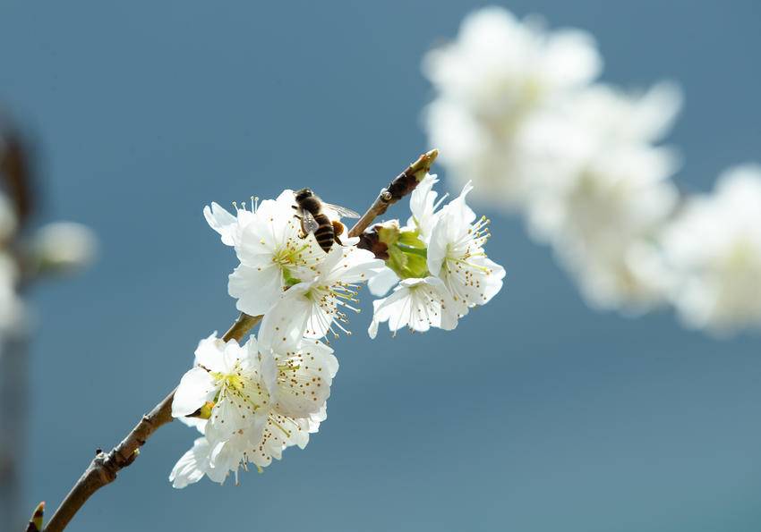 绵延数里的粉白花带,沿着长江北岸铺展开来,像是谁把云霞揉碎了撒在山坡上。太阳懒洋洋地晒着,几只蜜蜂在花瓣上拼命吸着蜜,江风吹过,便有细碎的花瓣雨飘落下来——飘进刚刨开的锄头窝窝里,随即便被新翻的泥土轻轻掩埋。