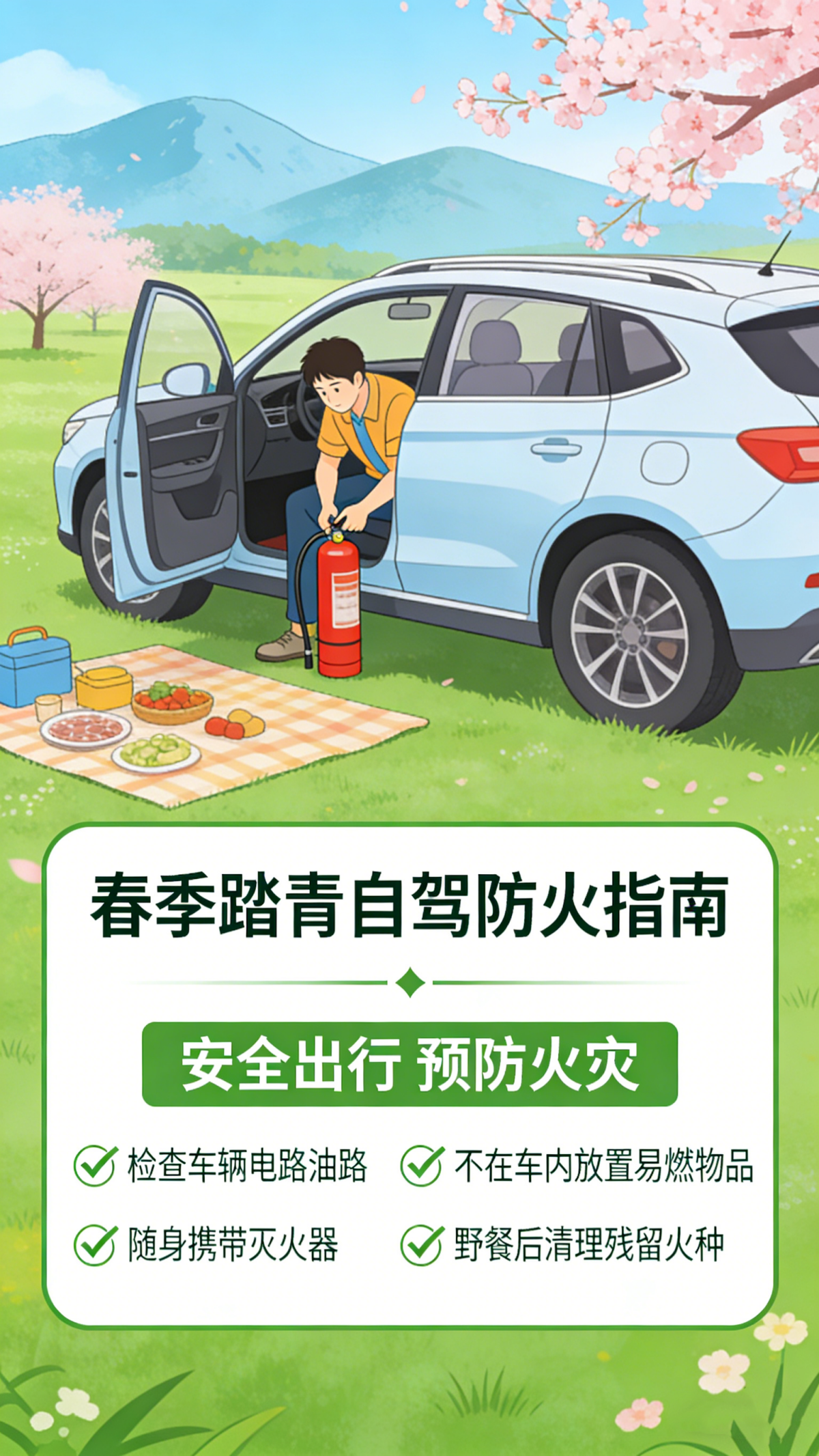 咸宁消防提醒,踏青郊游前,要仔细检查家中的火灾隐患,检查液化气、天然气的阀门是否关严,检查室内各种电源插头是否拔掉;检查室内易燃物是否清扫干净,检查无误后,方可锁好门窗,外出度假。选择自驾游的旅客切忌在车内放置气体打火机、空气清新剂、灭蚊剂等受热膨胀后易引起火灾的易燃易爆产品。禁止携带火柴、打火机等火种进入森林。若遇到突发山火或森林火灾,在确保自身安全的前提下,及时报火警,逃生时注意留意脚下,避免掉进山谷或河流。