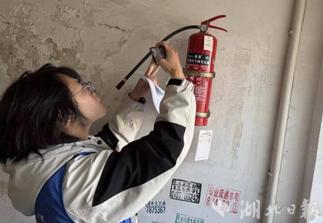 志愿者检查消防器材。(通讯员陈韫西摄)