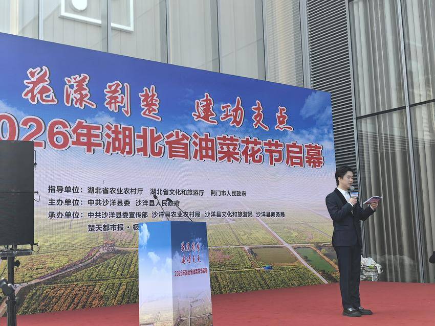 湖北日报农村版讯(记者郭崇乐、通讯员张思、朱秀晖)3月11日,2026年湖北省油菜花节启幕暨沙洋县农产品推介活动在武汉举行。会上获悉,2026年湖北省油菜花节将于3月18日在荆门开幕,主会场设在荆门市沙洋县曾集镇张池村农耕文化体验园。届时,游客可欣赏到沙洋县80余万亩全球最大连片油菜花海。
