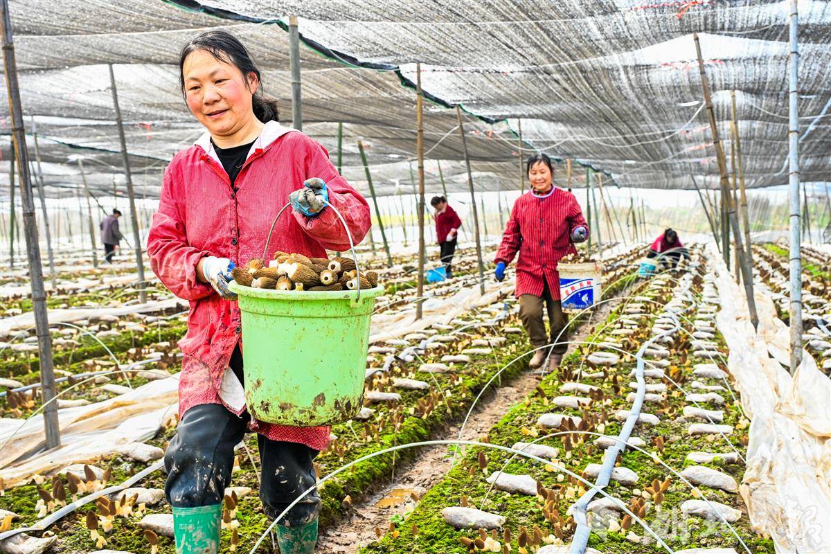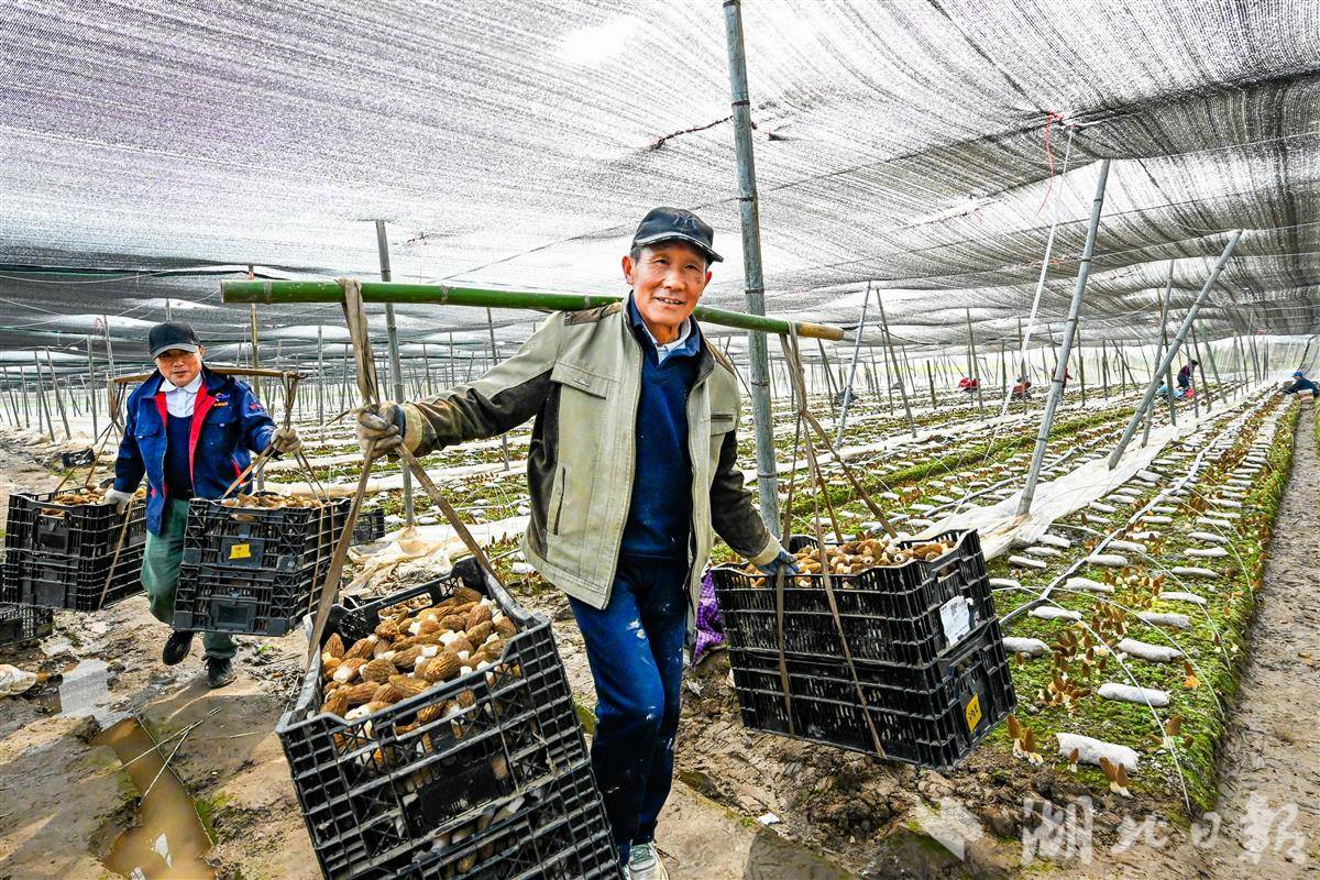 3月9日,黄冈市浠水县戴家洲,农户在大棚内采收羊肚菌。近年来,当地立足长江岸线土地资源禀赋,破解洲滩土地综合利用难题,通过“科学规划+产业引领”模式,依托羊肚菌等高附加值作物,构建起“种植+加工+销售”全产业链,既盘活了土地存量,又拓宽了农户增收渠道,成为带动群众致富、推动乡村产业振兴的 “金疙瘩”,绘就出一幅土地增效、农民增收的乡村振兴新画卷。(视界网 王江 摄)