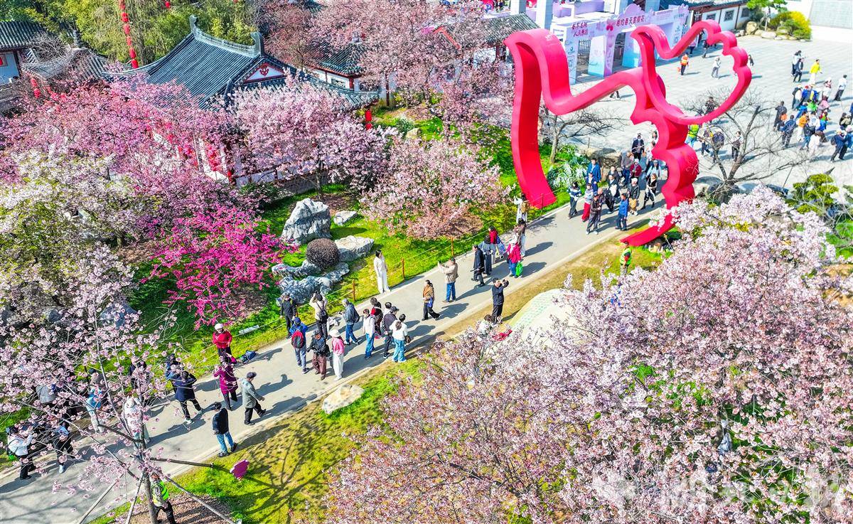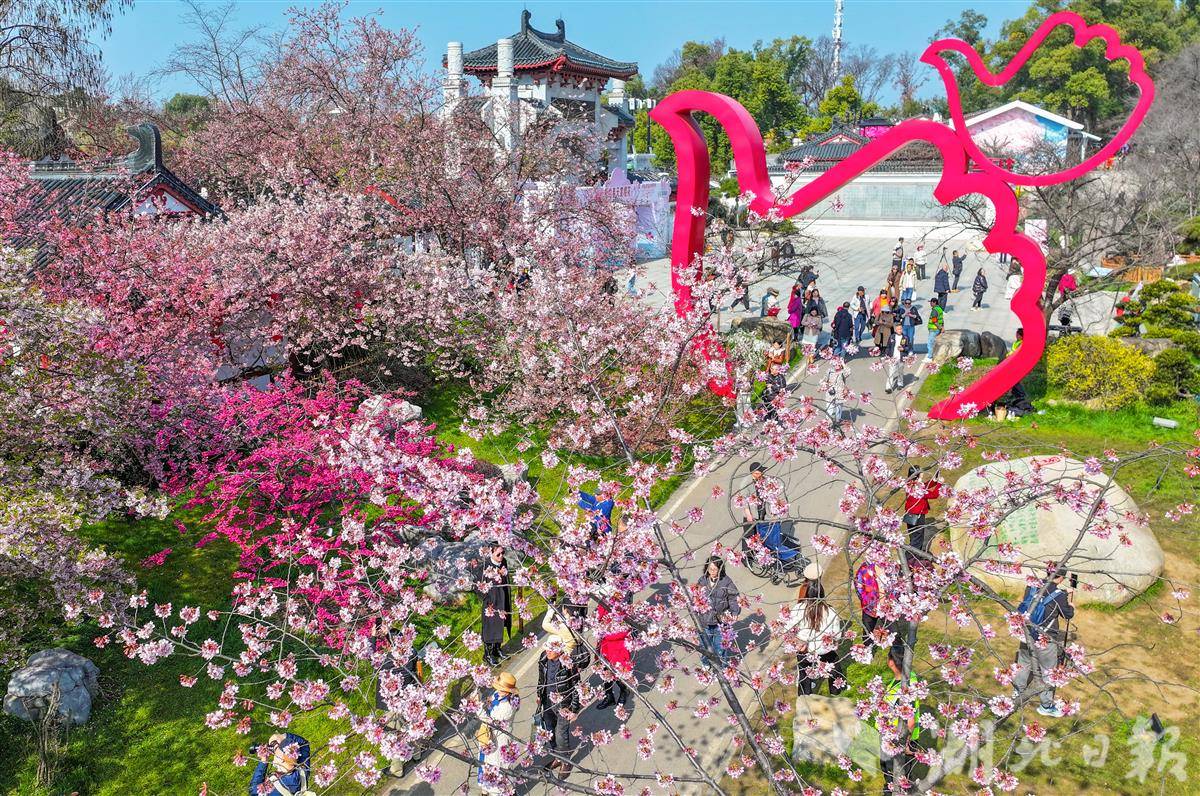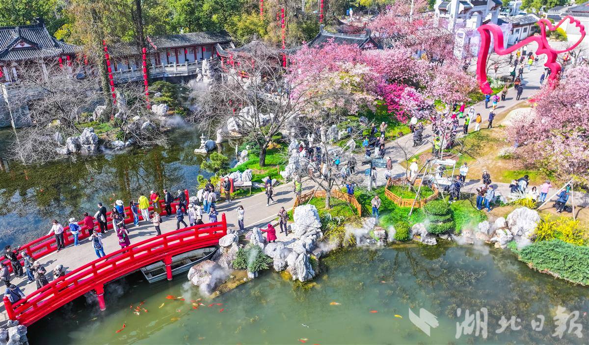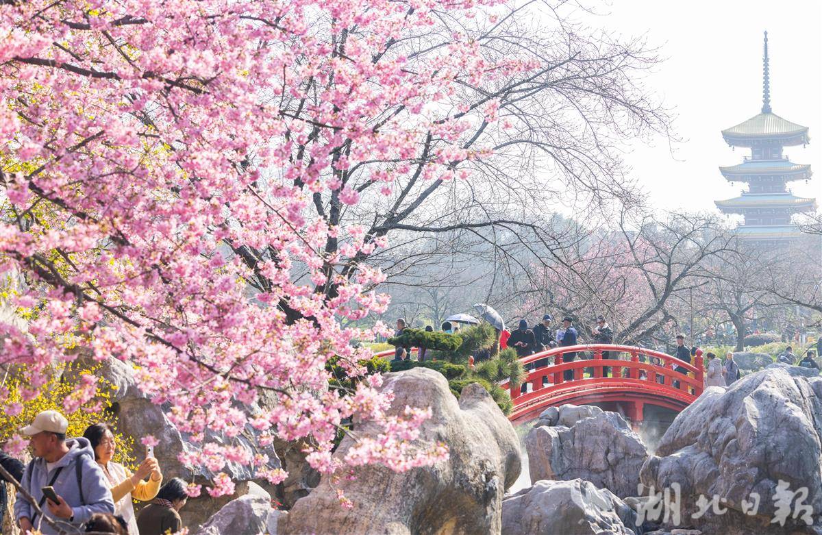 3月11日,武汉东湖樱花园早樱绽放,粉红花瓣缀满枝头,吸引来自香港、广州、湖南等地游客纷至沓来,共赏春日美景,尽享浪漫春光。(湖北日报全媒记者 薛婷 摄)
