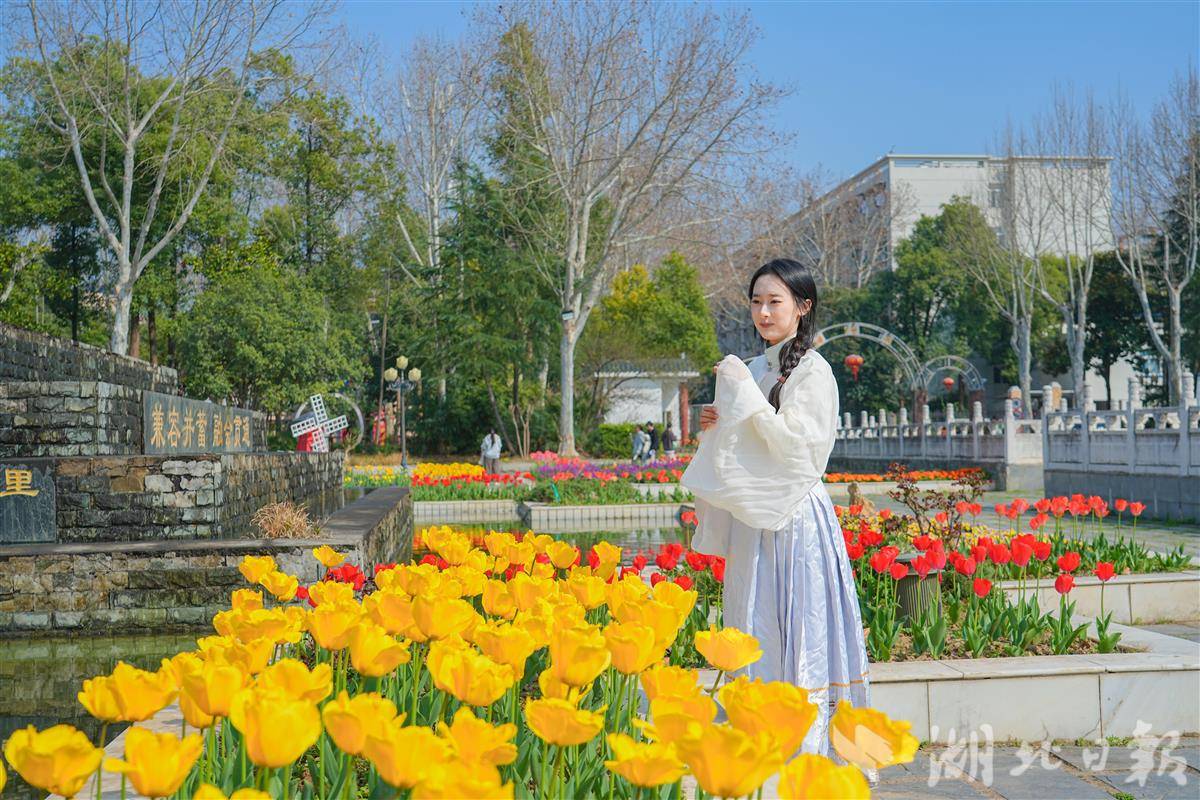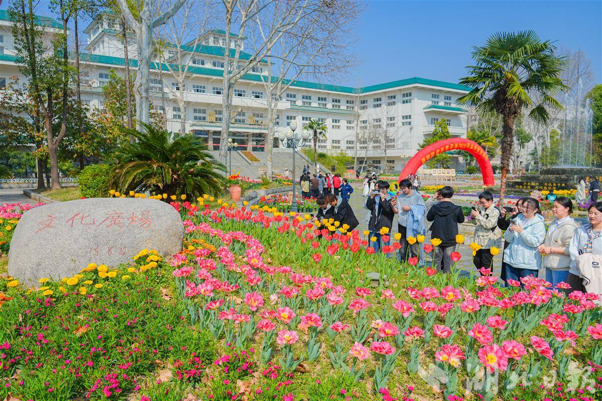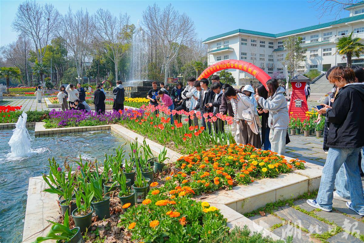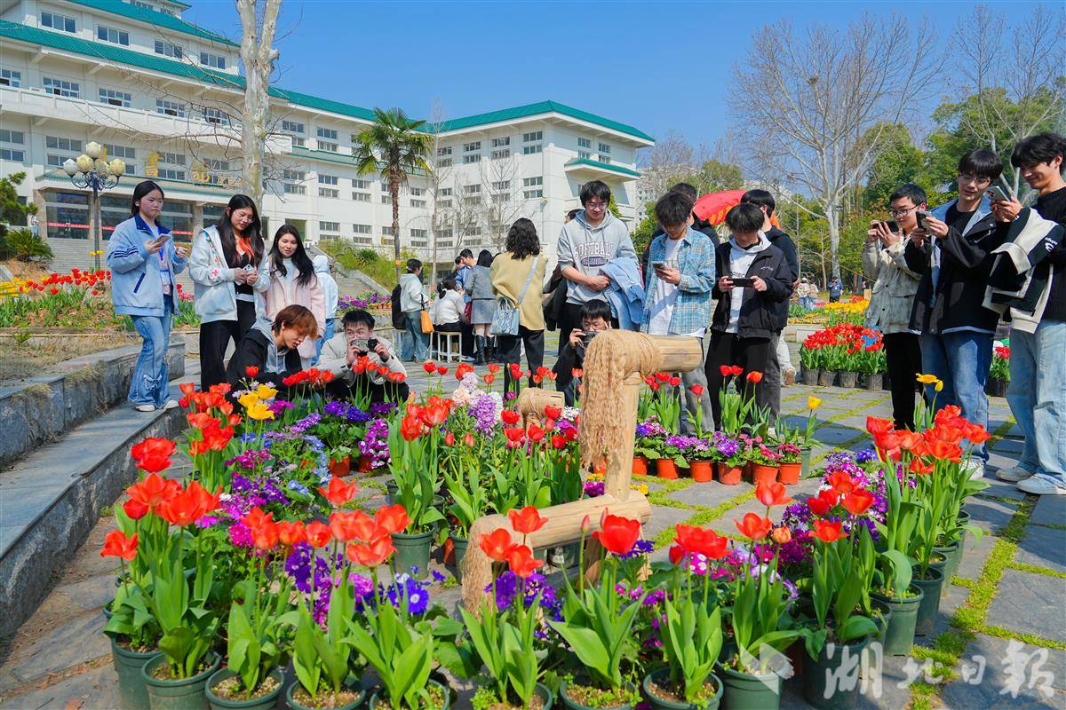 湖北日报讯(记者孙凌、通讯员刘娜、摄影、陈冲、郑景升)春和景明,繁花缀校。3月11日,武汉生物工程学院2026年郁金香暨春菊展在文化广场启幕。3.7万株郁金香与3万株春菊次第绽放,为春日校园注入灵动生机,成为新学期师生逐梦前行的美好注脚。