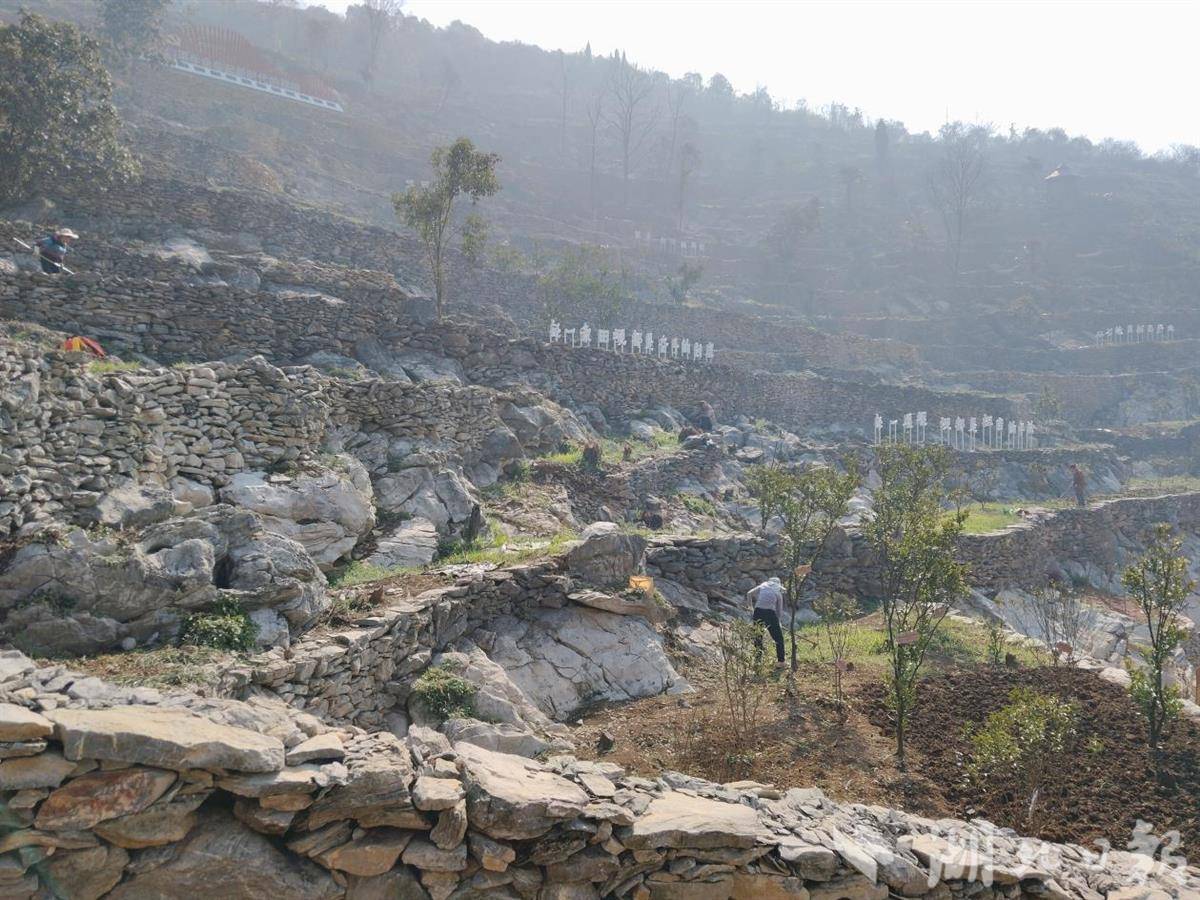 为让葛麻塘梯田变身“花果山”,今年开春以来,社区便组织人力,在梯田区域补栽种桃树苗200株、枇杷苗200株,同步开展杂草清理、土壤深耕等工作,为果树茁壮成长筑牢基础,让春日梯田既有绿意盎然,更有花果可期。