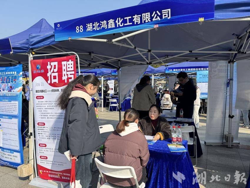 上午9时,中南民族大学体育馆内人潮涌动,“精细化工产业专区”红色标识格外醒目,祥云集团、宏源药业、迅达药业、鸿鑫化工等企业展位前排起长队。岗位设置紧扣武穴产业脉搏,涵盖应用化学、材料工程、制药工程、电气自动化等专业领域,为毕业生提供专业对口、前景明晰的就业选择。“研发岗还招人吗?”湖北美天生物公司展位前,应用化学专业学生张锐递上简历。招聘经理吴先生接过简历,随即打开手机里的工厂实景视频,详细介绍生产流程和研发环境,并发出实地参观邀请,两人互加微信约定后续沟通。一旁的湖北祥云集团展位同样人气高涨,招聘负责人陈雨分正向学生热情介绍企业新材料项目前景:“我们急需懂精细化工的年轻人,入职后有完整的培训体系和晋升通道,只要肯学肯干,发展空间很大。”该负责人表示,当天线下共收到简历50余份,“学生专业匹配度很高,招聘效率远超预期。”