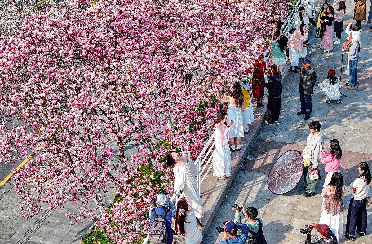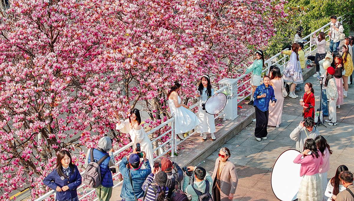 3月的武汉,晚梅未谢,玉兰已悄然登场,还有杏花、早樱、郁金香、映山红……全都颜值在线,仿佛世间的所有美好都正在暖风中酝酿生长。(湖北日报全媒记者 朱熙勇 摄)