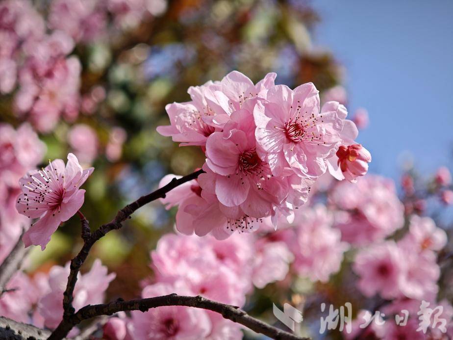 湖北日报讯(记者杨文漪、通讯员 宋楚秋、许华军)3月12日,武汉迎来晴好天气,月湖公园里春意正浓。南岸美人梅小径上,200余株美人梅织成一片粉色云霞,游客们穿梭其间,或举着手机寻找最佳角度,或让同伴在花瓣雨中抓拍瞬间。“听说这里的花开了,特意带着孩子来拍照。”市民李女士兴奋地说。