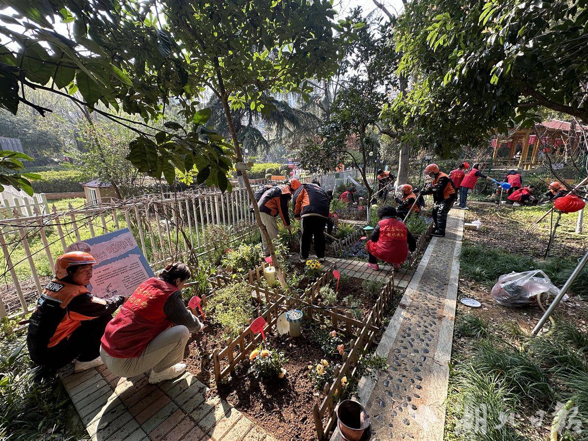 湖北日报讯(记者张华、通讯员杨斯磊)草长莺飞,春染枝头,又到一年植绿好时节。武汉市武昌区南湖街道中央花园社区开展植树节主题活动,社区党员志愿者携手邻里园艺师、“轻骑兵”志愿服务队成员齐聚“我家小院”花园,挥锹培土、栽花植绿,共筑生态宜居的美好家园。