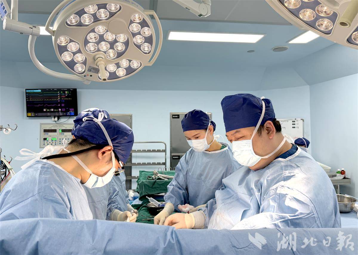 华正东(右一)带领团队为小杰实施手术。(受访单位供图)