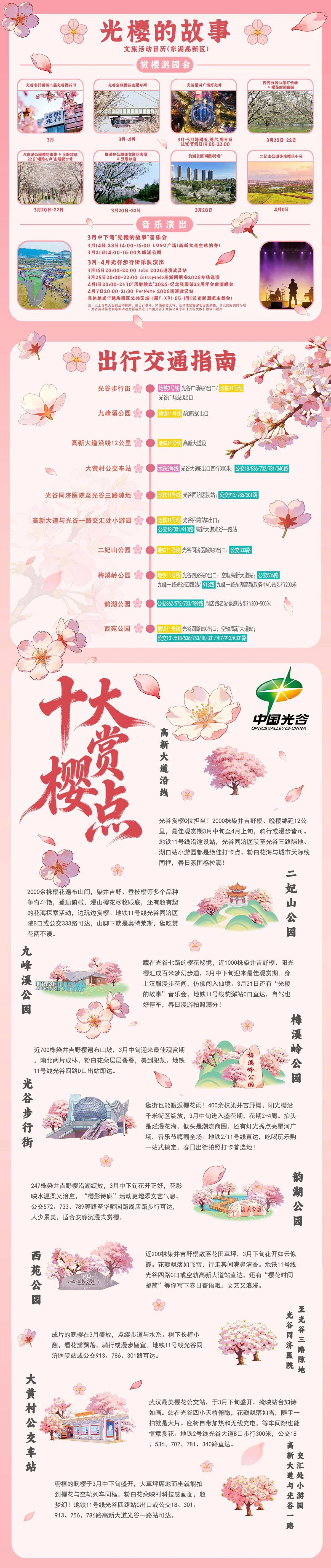 武昌区、东湖高新区、东西湖区等发布赏樱攻略。