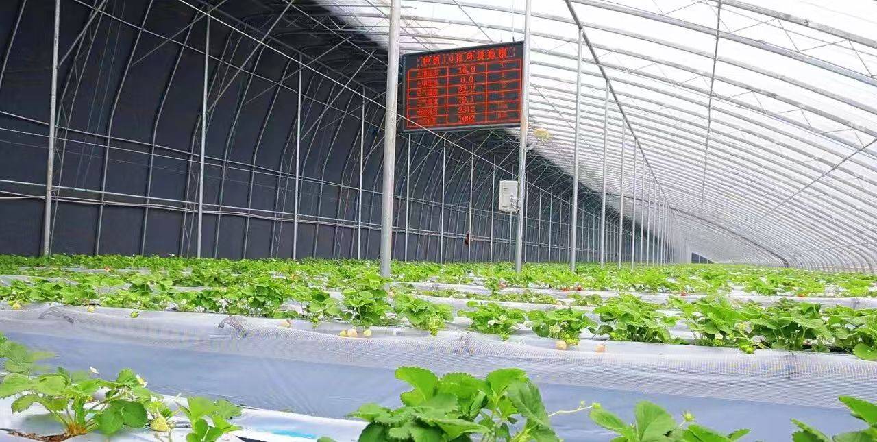 物联网大屏实时显示土壤温度、空气湿度、光照强度等数据;一旦缺水缺肥,系统自动报警。水肥一体化设备按键即启动,药液喷洒均匀;轨道车穿梭其间,采摘运输省力高效。