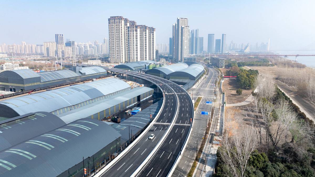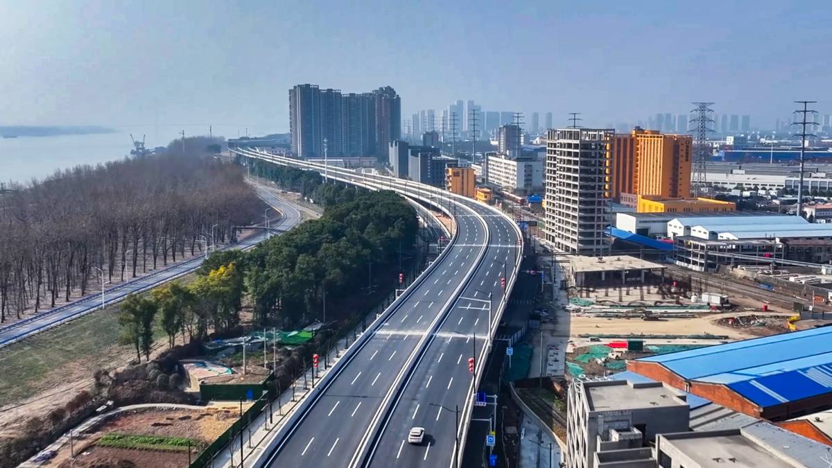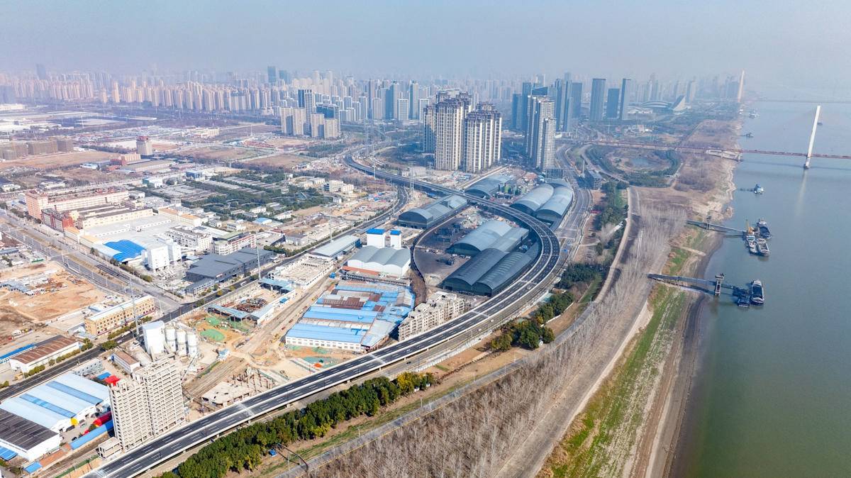 这条快速路沿长江左岸向西南蜿蜒,串连沌口、军山新城和汉南,远期将连通武松高速,采取分段建设——