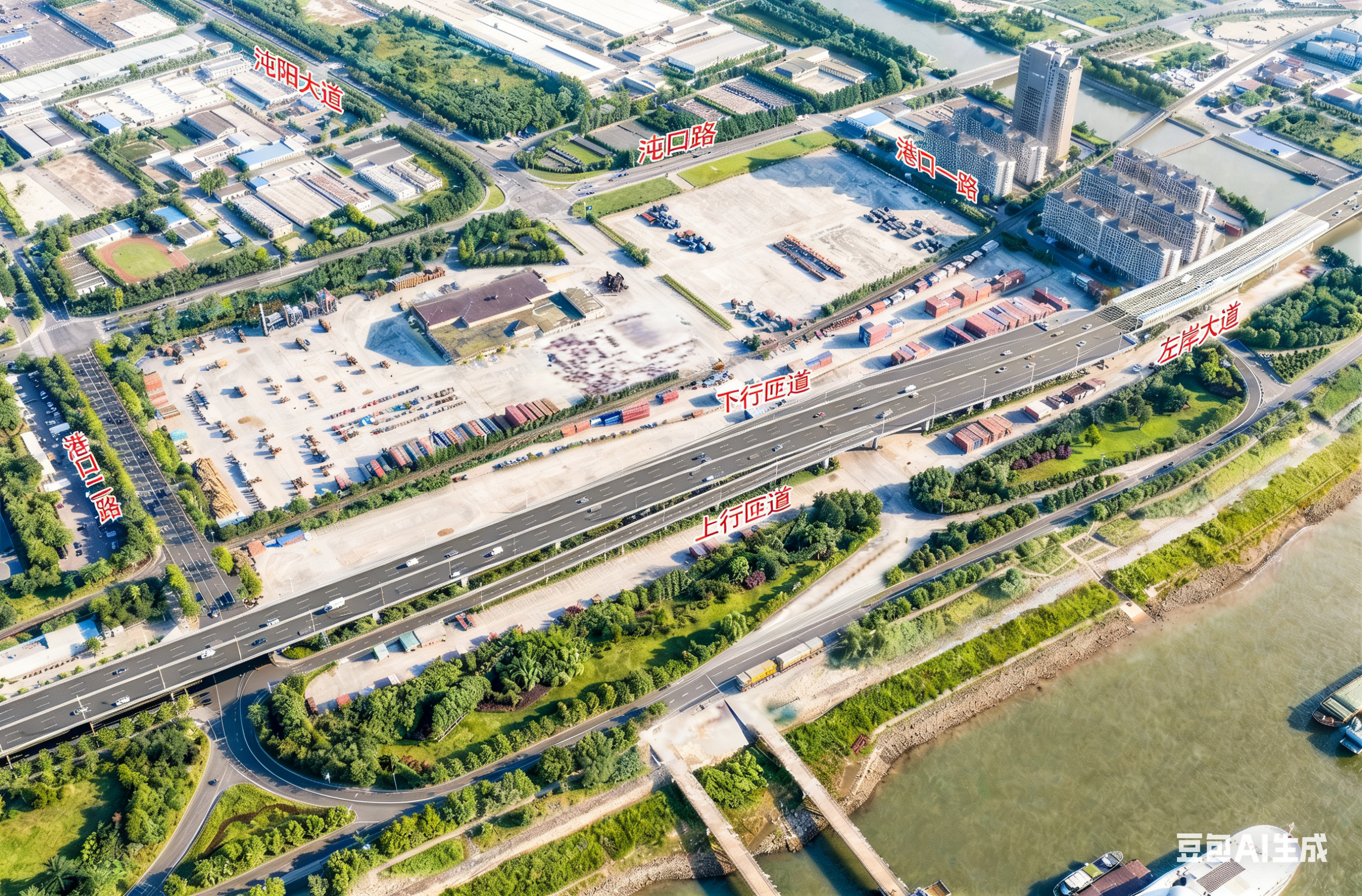 港口二路同步扩宽改造,向北侧江盛码头仓库方向单侧扩宽7米,扩宽后道路宽度27米,双向四车道,全长约290米。此外,还将新增万家湖南路下穿铁路通道,宽度30米,全长约280米,进一步提升通行承载能力。