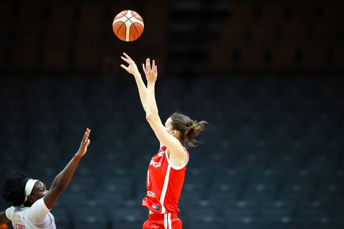 3月12日,2026年女篮世界杯预选赛武汉赛区第二比赛日,马里队77比64战胜捷克队,拿下球队赛事首胜。(湖北日报全媒记者 时龚 摄)