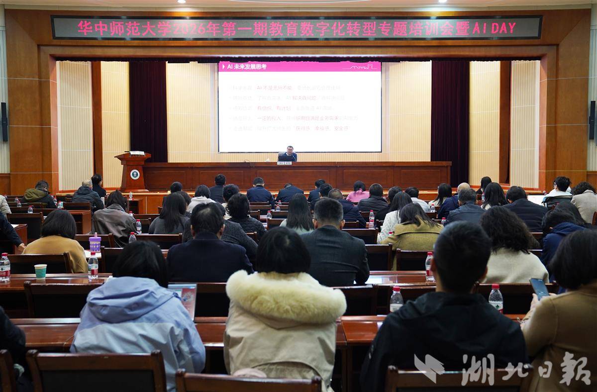 湖北日报讯(记者韩晓玲、通讯员张志彬、成雯)3月12日,华中师范大学2026年第1期教育数字化转型专题培训会暨AI DAY举行。该校创新采用“小切口、大纵深”模式,通过分层分类系列活动,以微小支点撬动教育场景创新与师生思维深层变革,系统提升全员人工智能素养,助力教育数字化转型走深走实。