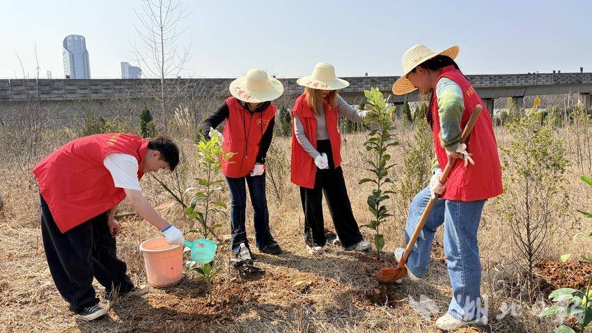 湖北日报讯(通讯员陈姝、李希笛)为深入学习贯彻习近平总书记关于弘扬雷锋精神的重要指示精神,大力弘扬志愿精神,引导青年职工践行社会责任,3月11日,中铁武汉电气化局物贸公司团总支联合中铁物贸武汉公司、中铁重工团委,共同参与中铁武汉电气化局团委举办的“追‘锋’而行青春行动”学雷锋义务植树主题团日活动。40名青年志愿者齐聚武汉光谷有田劳动教育实践基地,以植树护绿践行生态责任、深化企业情谊,为江城添绿、为生态赋能。此次活动既是三家在汉央企深化合作、凝聚共识的务实举措,也是青年职工交流成长的生动实践。