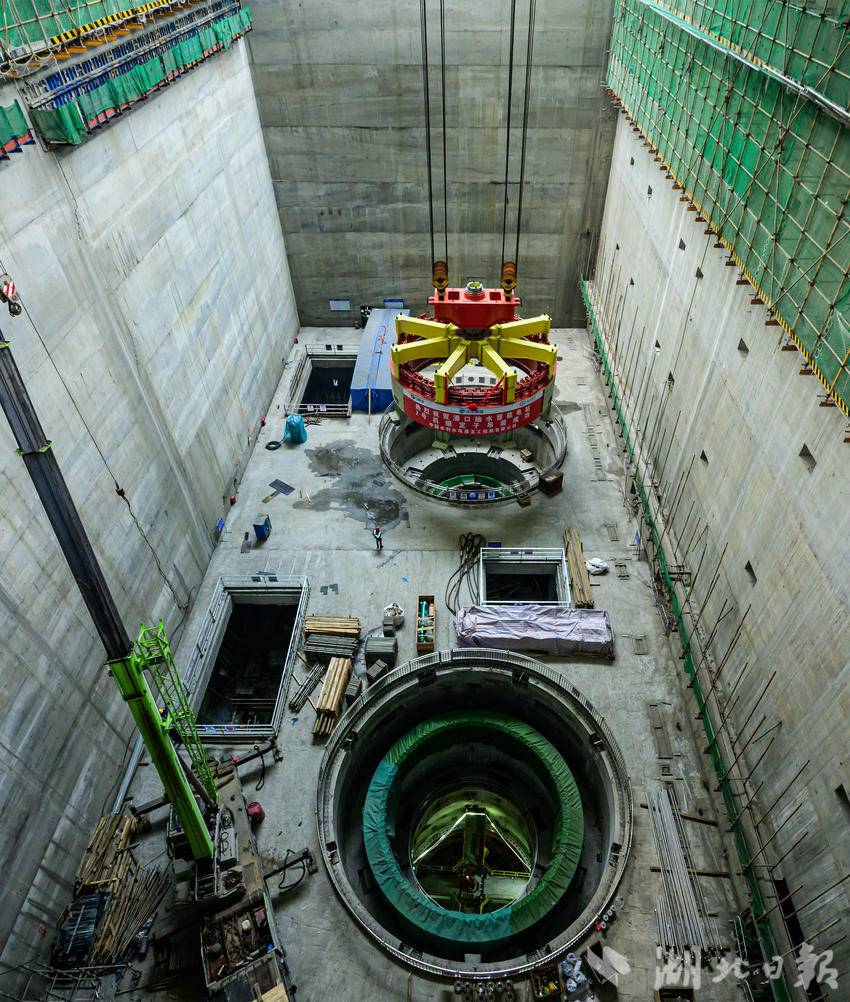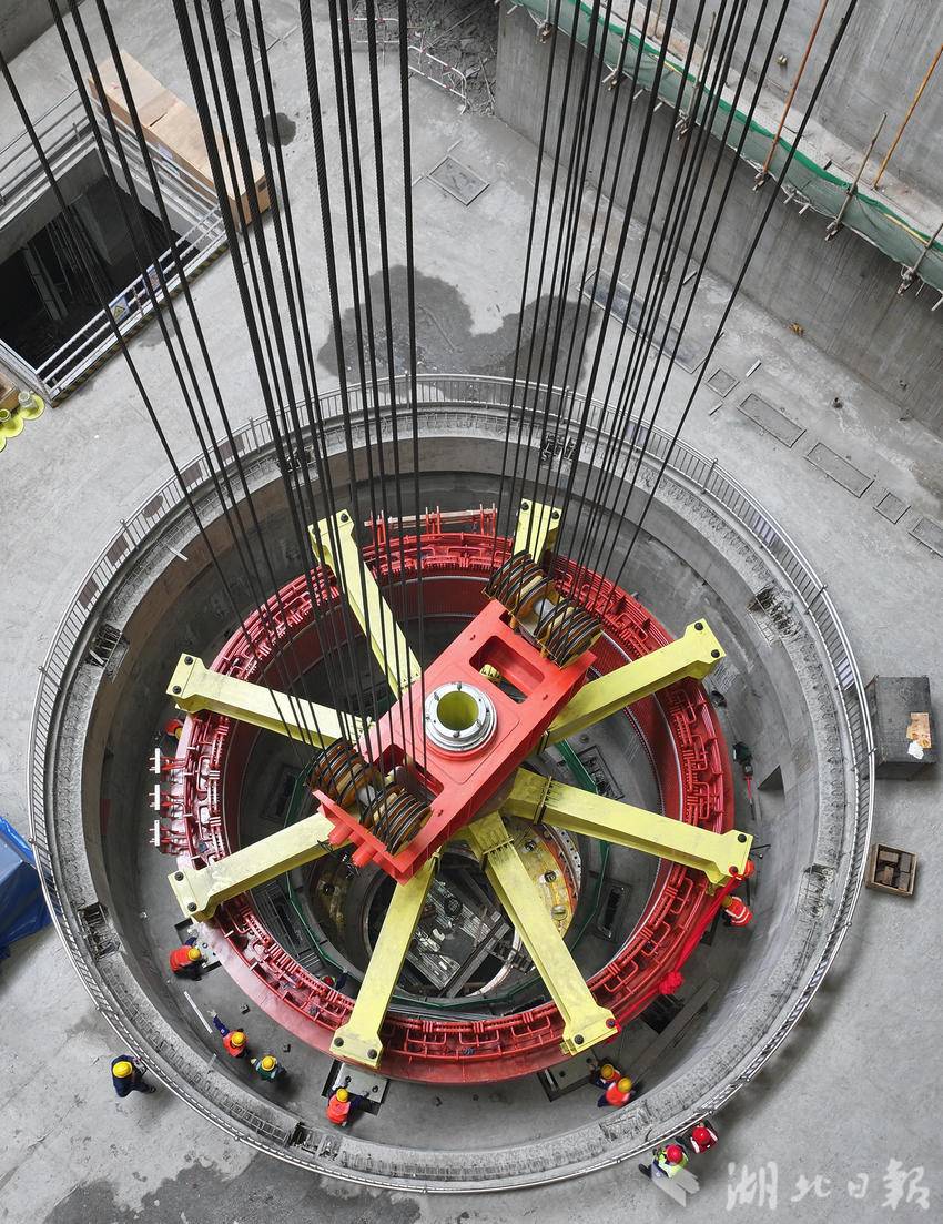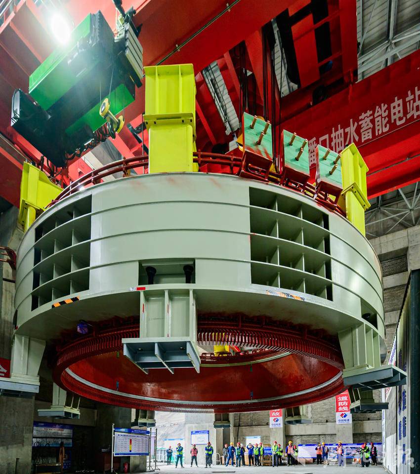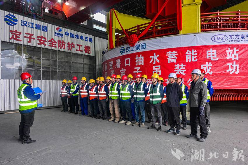 湖北日报讯(通讯员石濡华、陈宝林、李梦雨)3月12日,在湖北省十堰市竹山县潘口抽水蓄能电站水电机房内,中国水电五局工作人员将一个205吨的定子精准吊装到2号机组机坑。至此,电站内两台机组定子全部吊装完成,标志着电站机电设备安装取得重大阶段性成果,为后续机组总装、调试及按期投产奠定坚实基础。
