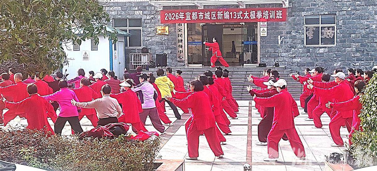 湖北日报讯(通讯员杜德)三月的宜都,春意盎然。11日至12日,宜都市体育馆北门广场上人头攒动、拳影翩跹,由宜都市老年人体育协会和市太极拳协会联合主办的“2026年宜都市城区新编13式太极拳培训班”在这里隆重举行。来自城区23个太极拳辅导站的280名骨干队员齐聚一堂,以拳会友,以练促学,用太极之美点燃新春健身热情。