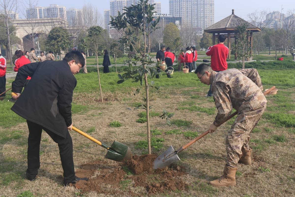 3月12日,湖北省军区荆州离职干部休养所与荆州职业技术学院联合开展植树活动,让“迷彩绿”与青年学子在共建交流中传承弘扬“双拥工作”好作风、好传统。