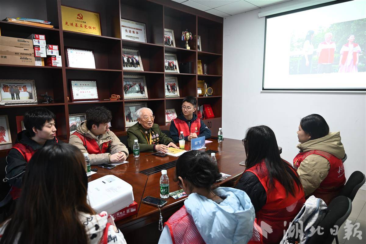 近日,武汉市东湖高新区关东街道金地社区迎来了一场特别的对话。华中农业大学红杜鹃爱心社的青年志愿者与“最美志愿者”胡广伦共聚一堂,以老照片分享为媒,展开了一场跨越代际的“老兵与学子的对话”。老兵精神与青年志愿力量在此交汇。