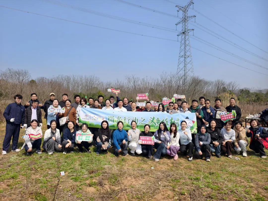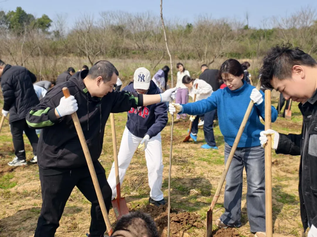 3月12日植树节当天,武汉分中心以“微光行动之义务植树”为主题,组织全体员工前往江夏区郑店街劳四村开展植树活动。上午9时,全员统一集合乘车前往目的地,途中工作人员细致讲解活动流程、植树要点与安全注意事项,为活动有序开展筑牢基础。抵达现场后,在专业人员的示范指导下,大家分组领取铁锹、水桶、树苗等物资,迅速投入到热火朝天的劳作中。挥锹铲土、扶正树苗、填土压实、提水浇灌,每一道工序都有条不紊、一丝不苟,现场处处洋溢着团结协作、昂扬向上的浓厚氛围。员工们还为亲手栽种的树苗悬挂专属标识牌,写下暖心绿色寄语,把对生态环境的美好期许,化作扎根大地的“绿色印记”,为江夏大地添上了一抹鲜亮新绿。