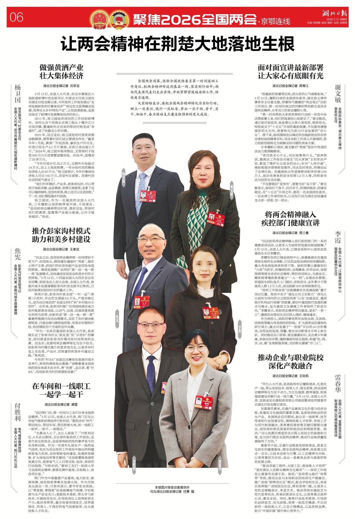 “作为一名来自基层的全国人大代表,我亲眼见证了彭家沟村从‘脏乱差’到‘示范村’的蝶变,深切感受到彭家沟村模式给村民带来的实惠。回去后,我要将两会精神转化为实干担当,把彭家沟村模式推介到更多地方去,让更多农村走上生态美、产业兴、百姓富的和美乡村建设之路。”焦宪说。