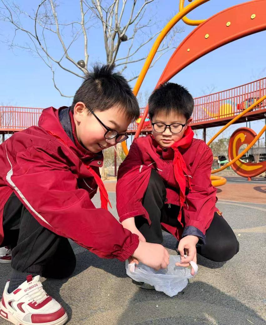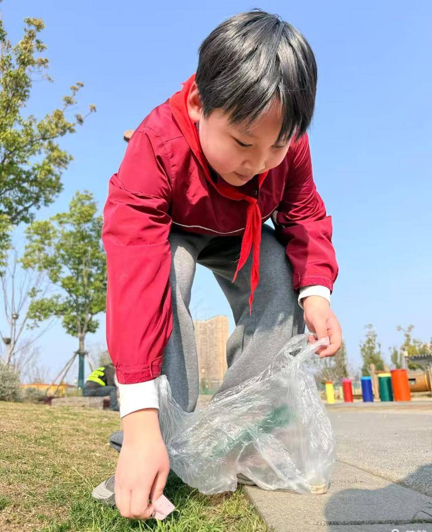 当日10时,该班全体同学于学校集合,排着整齐的队伍在带队老师引导下,向楚王城公园进发。这群红领巾进入公园后,同学们迅速分组,化身“环保小侦探”,在公园的各个角落“搜寻”垃圾。草坪上、长椅下、灌木丛中、湖边的石缝里……那些被随意丢弃的烟头、纸屑、饮料瓶和包装袋,都被同学们一一“揪”了出来。