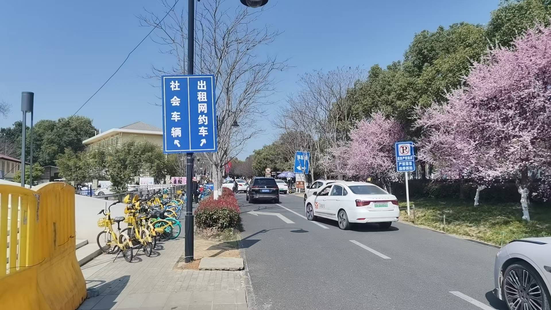 方案二:出租车、网约车均通过磨山樱花停车场,进入辅道临时落客区域,经鲁磨路驶出。