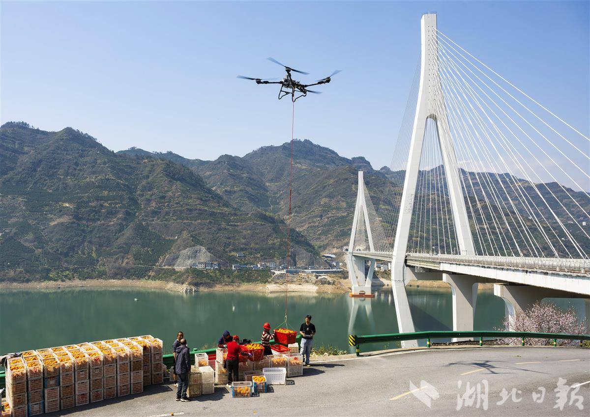 3月10日,技术人员在秭归县归州镇香溪村用无人机转运刚收获的中华红脐橙。秭归县近15万亩的中华红、伦晚、宗橙等春季脐橙陆续成熟上市,当地果农抓紧采收、转运、清洗分级、包装,通过电商等渠道供应市场。秭归县作为“中国脐橙之乡”,持续改良脐橙品种,一年四季有鲜橙上市,脐橙已成为该县果农增收致富的重要产业。(视界网 郑家裕 摄)