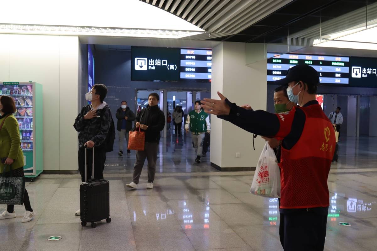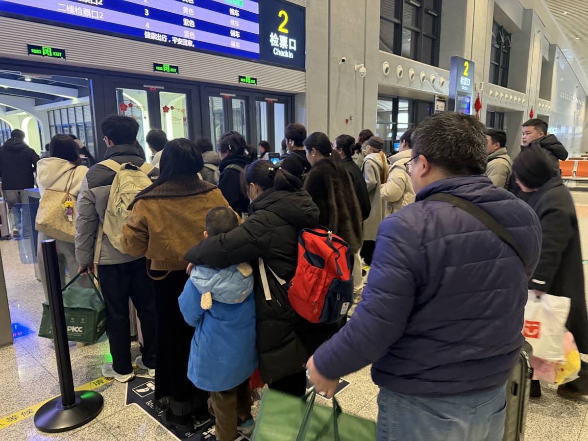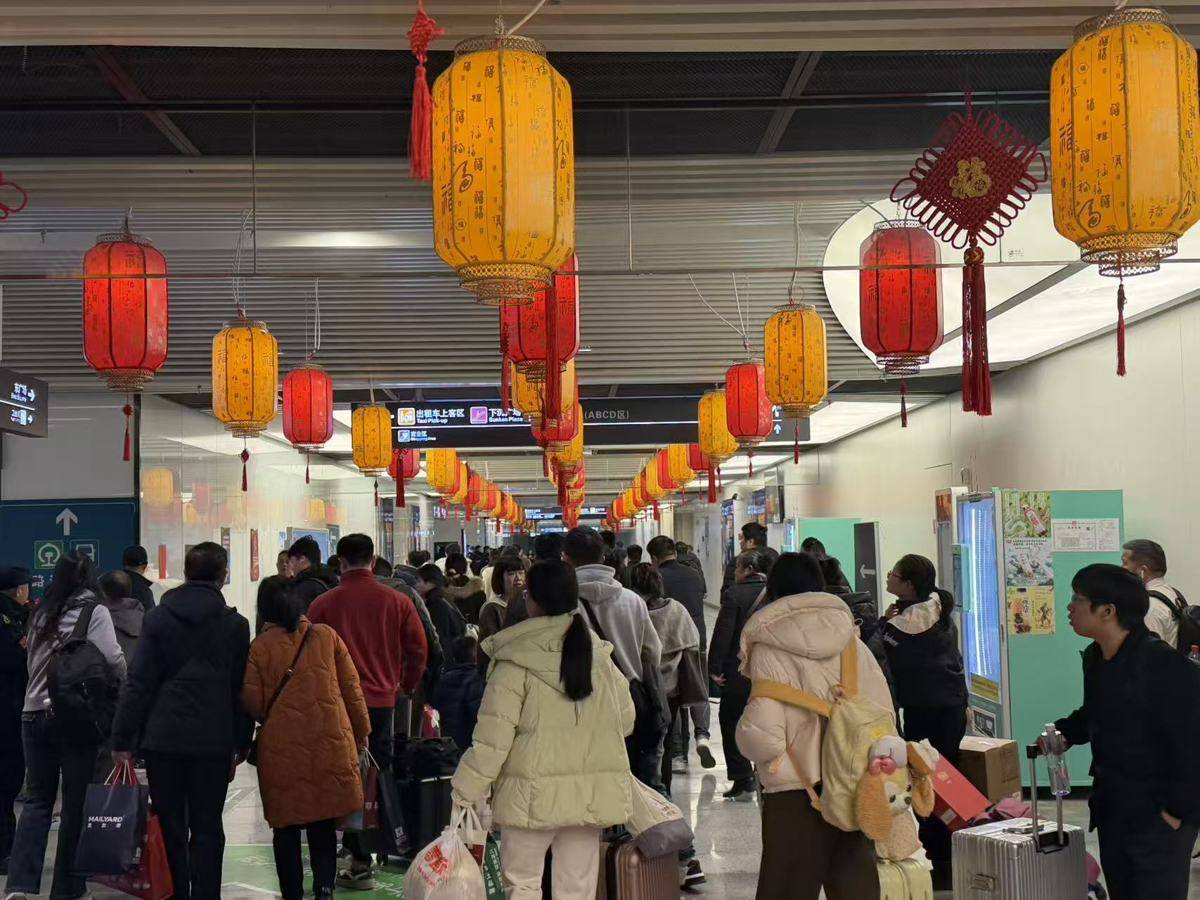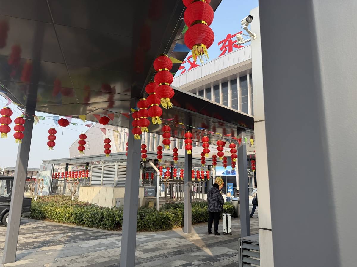 候车大厅中,大屏上播放着喜庆的祝福视频,广播里时不时传来安全提醒和“失物招领”信息,角落里在开展“送春联、送‘福’字”活动,领到的旅客都喜笑颜开,有的人举着“福”字,借着候车厅背景拍照。我忽然觉得,这里不只是一个交通枢纽,更是一个装载着无数期待与祝福的容器。