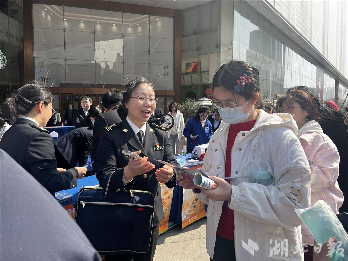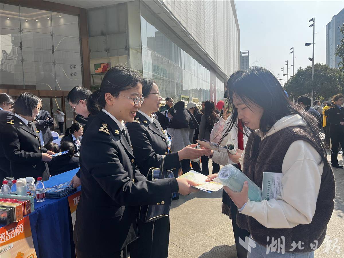 湖北日报讯(记者张爱虎、通讯员徐远)3月13日上午,在洪山区银泰创意城,武汉海关食安处的刘清秀与商检处王进勉两朵姊妹花,手持进口食品安全宣传资料和进口消费品质量安全宣传资料,主动发放给过往行人,并介绍相关情况。
