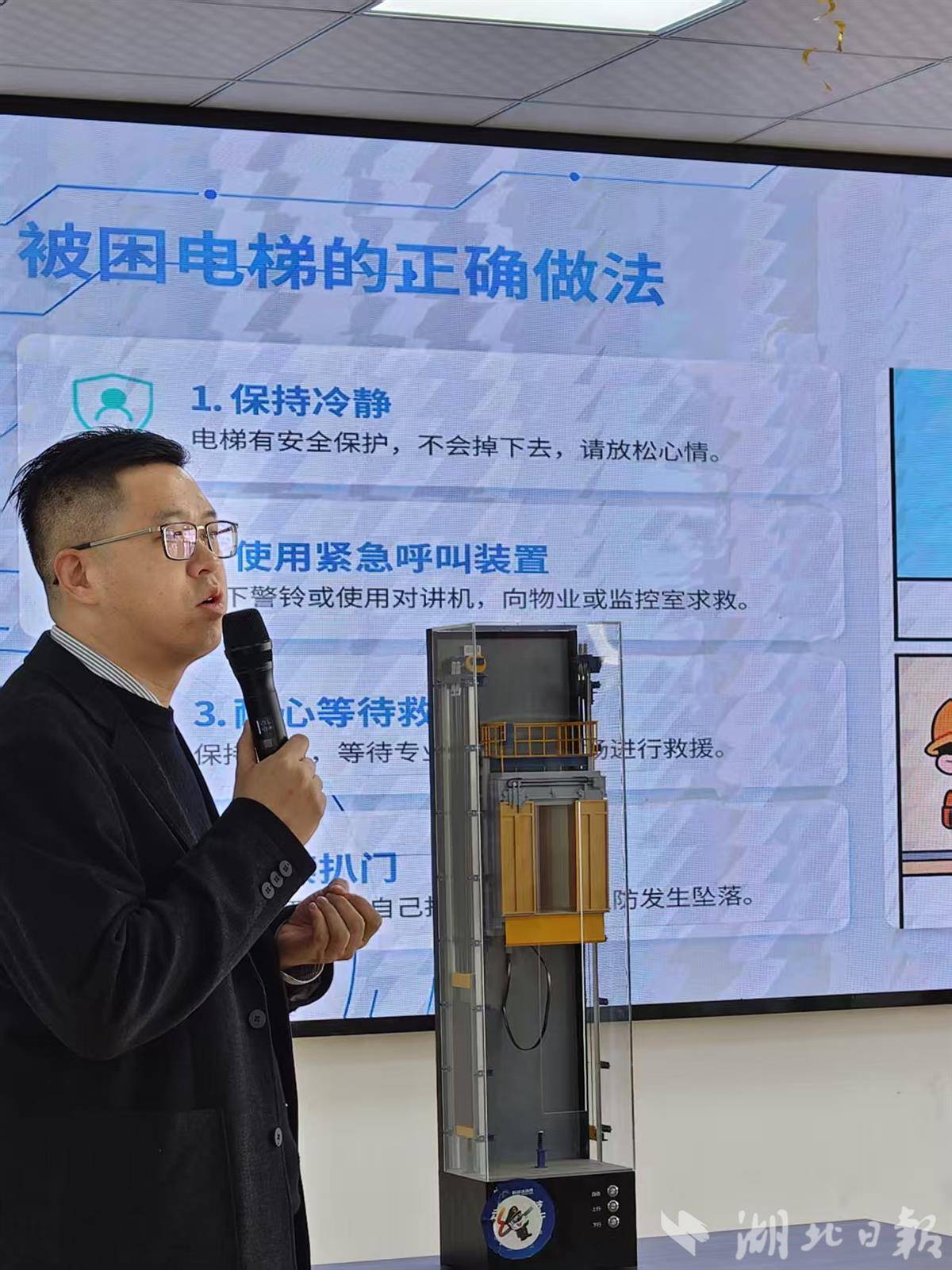 湖北日报讯(记者张爱虎、通讯员倪佳)随着城市的不断发展,电梯越来越多,电梯的安全运行备受各方关注。3月13日,省质量协会组织质量志愿者走进武昌区滨湖社区,为居民们送上电梯安全知识大餐。
