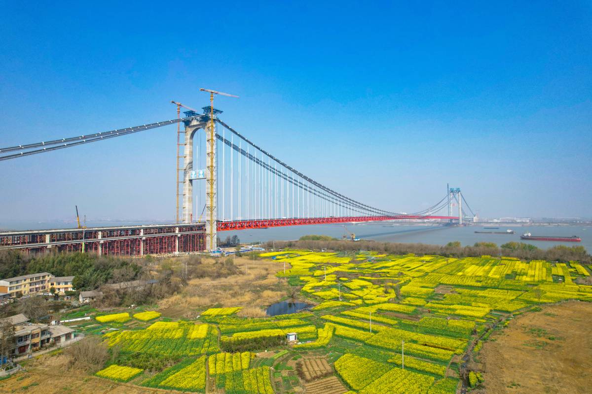 数据显示,2026年项目累计完成投资约3.88亿元,占年度投资计划的31.2%,开工项目累计完成投资约129.1亿元,占总投资额的93.8%。当前,燕矶长江大桥正开足马力,确保项目2026年建成并交工验收。