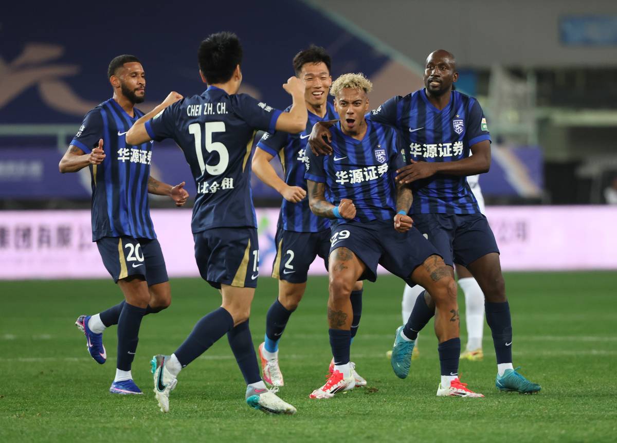 3月13日晚,武汉三镇4比1大胜大连英博,斩获新赛季首场胜利。(湖北日报全媒记者 柯皓 摄)