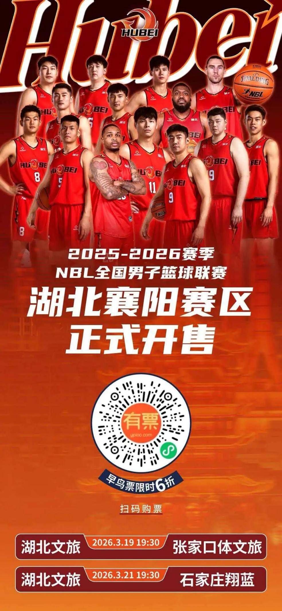 古城襄阳将再度点燃篮球激情,文旅体融合发展续写全新篇章。2025-2026赛季全国男子篮球联赛(NBL)湖北赛区襄阳分赛场赛事定于3月19日、21日在襄阳市体育中心正式打响,湖北文旅男篮将携全新阵容坐镇主场,为襄阳球迷带来两场精彩绝伦的篮球盛宴。