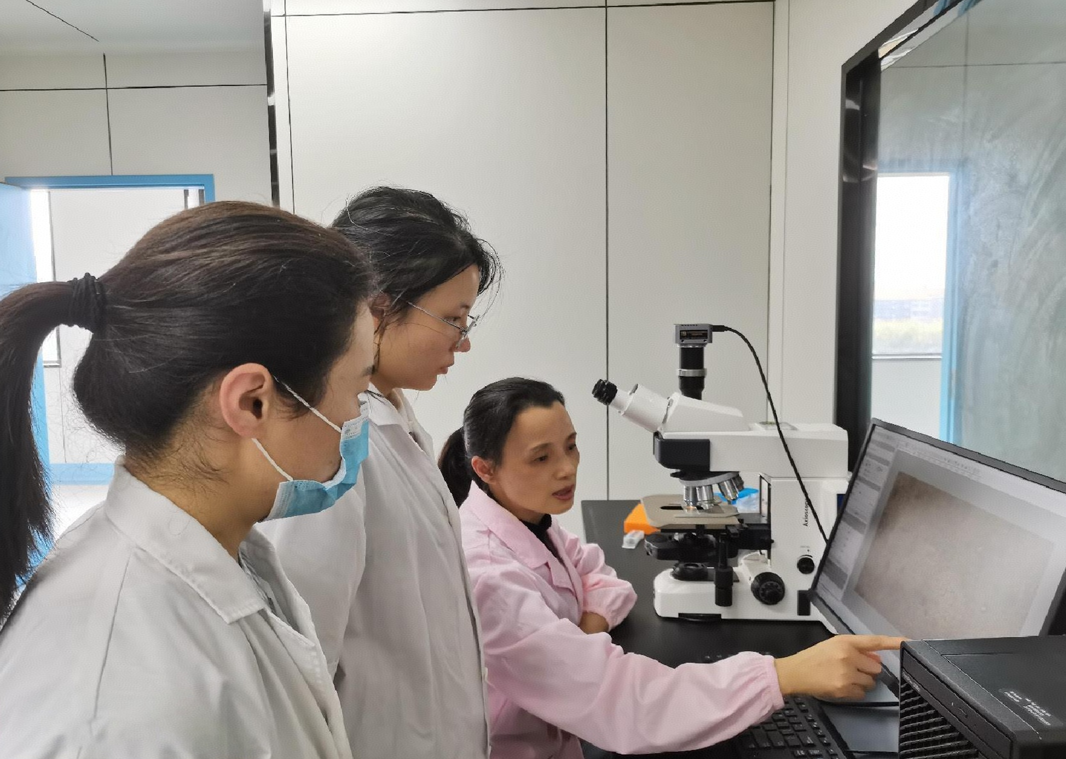 全国人大代表、江陵县疾控中心国家血防基地办主任李霞(右)在工作岗位上。(受访者供图)