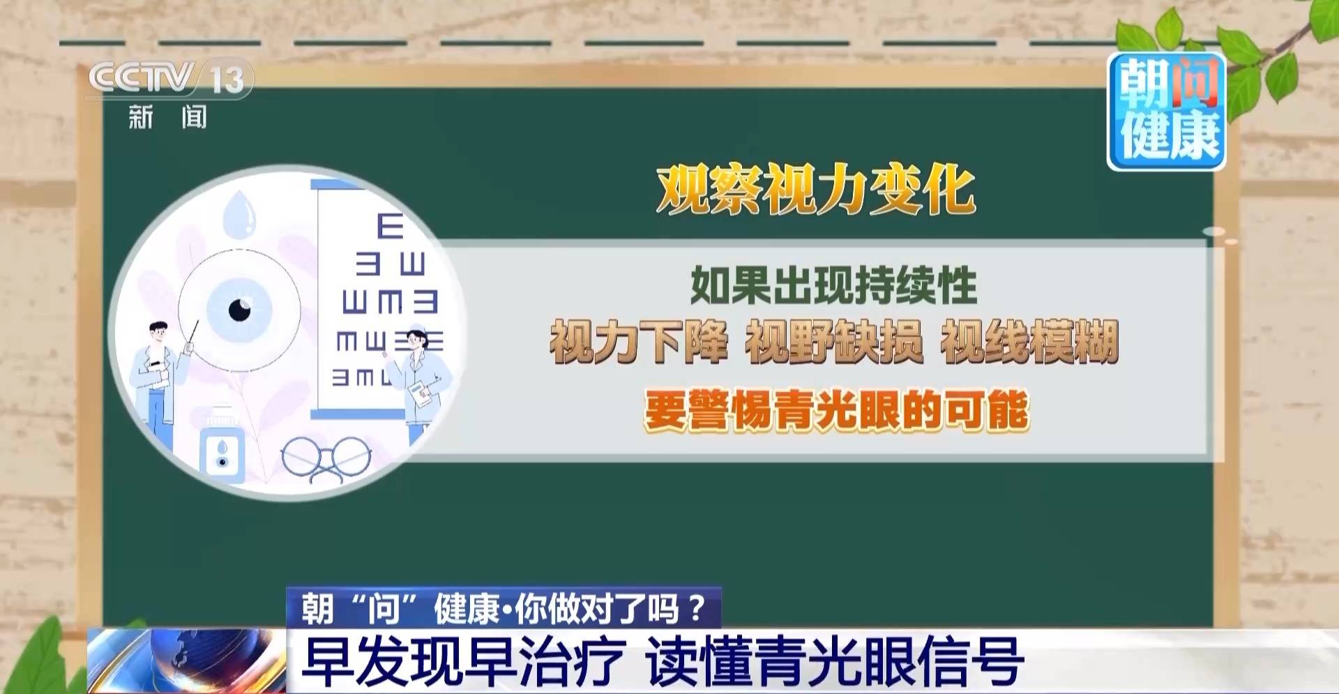 观察视力变化,如果出现持续性视力下降、视野缺损、视线模糊,就要警惕青光眼的可能。