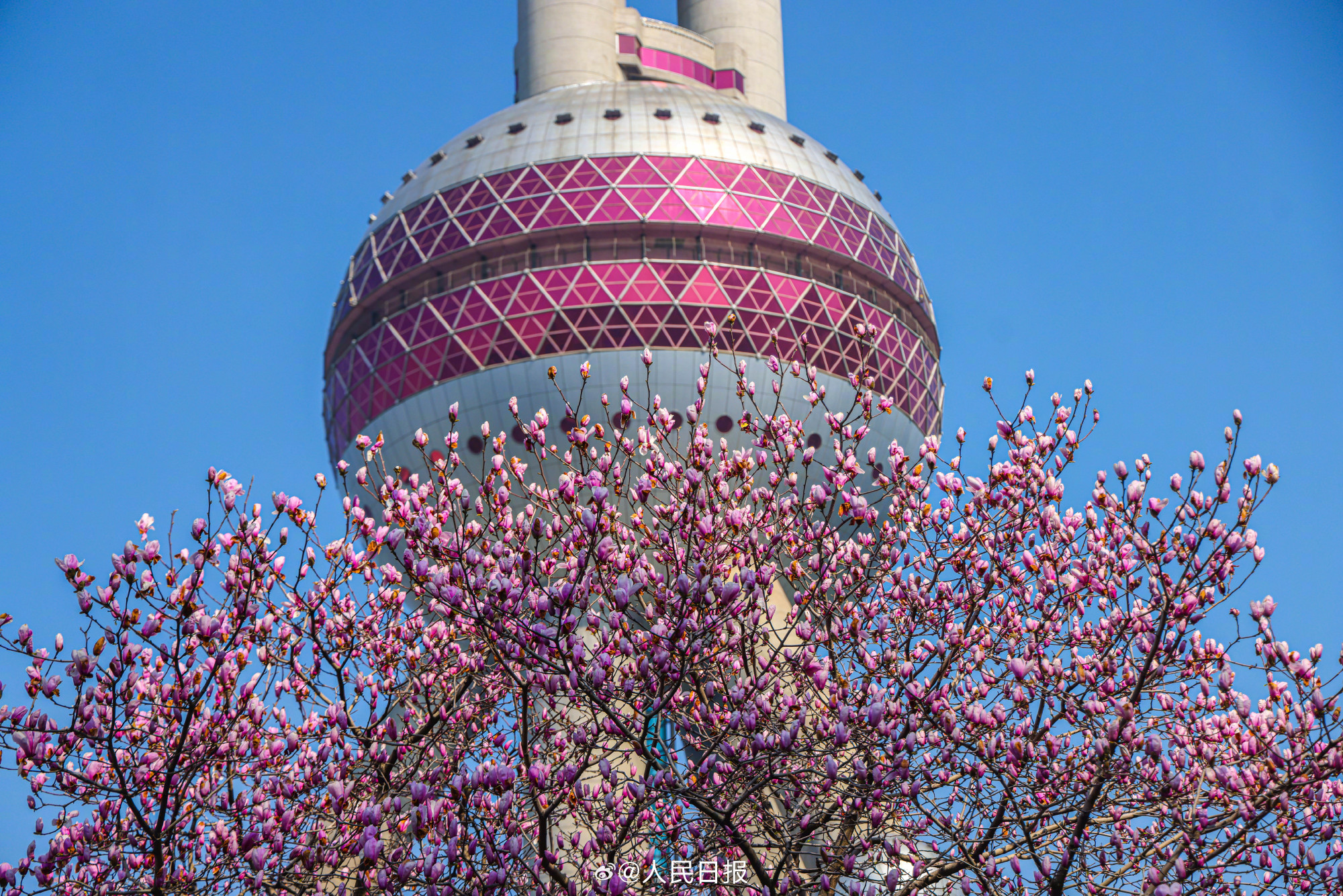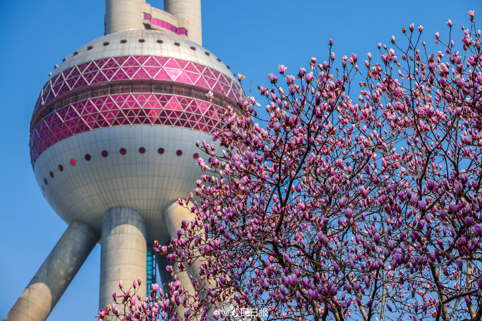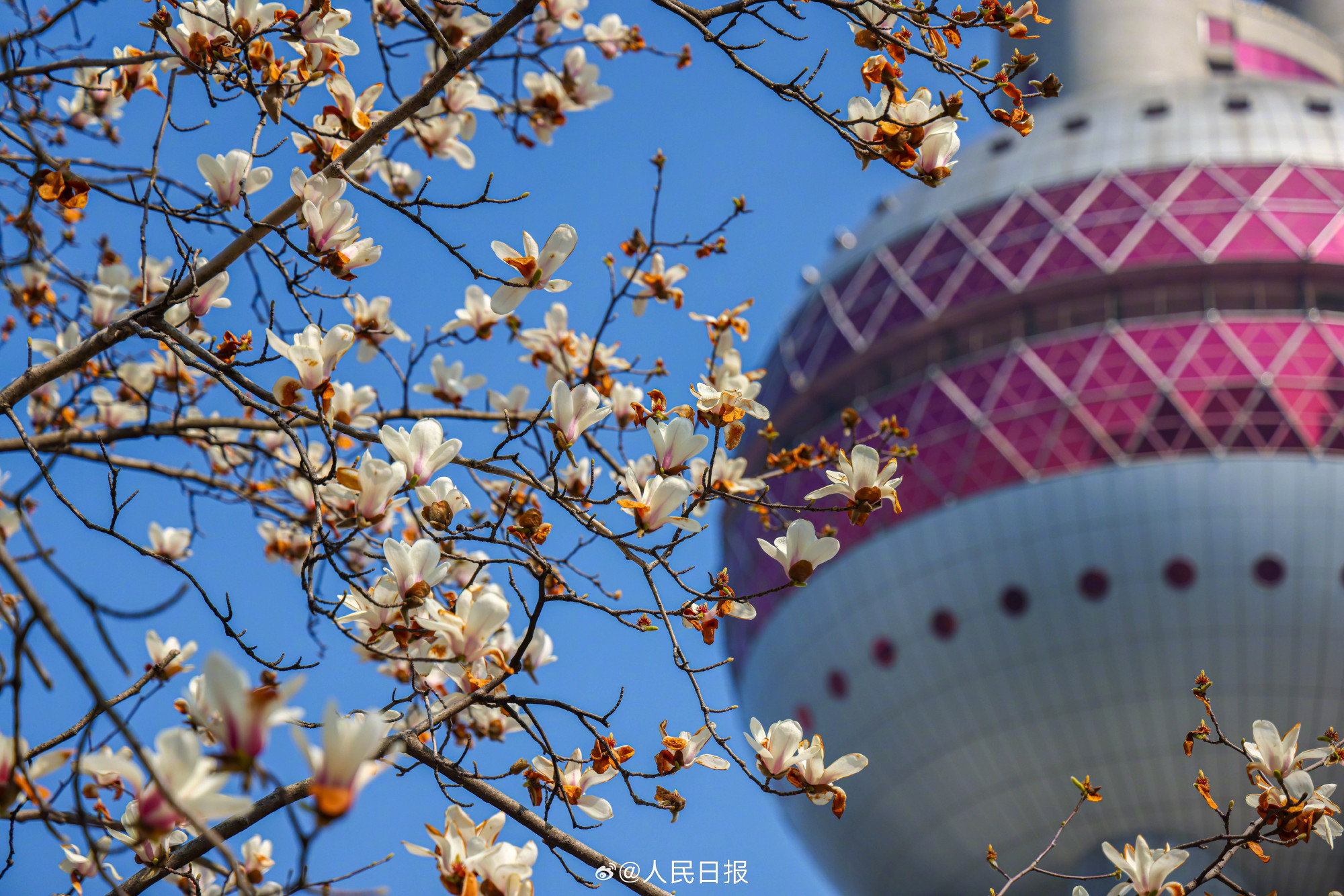 近日,上海陆家嘴环岛玉兰花开正好,吸引人们前来赏花,随手一拍都是春日限定美景。